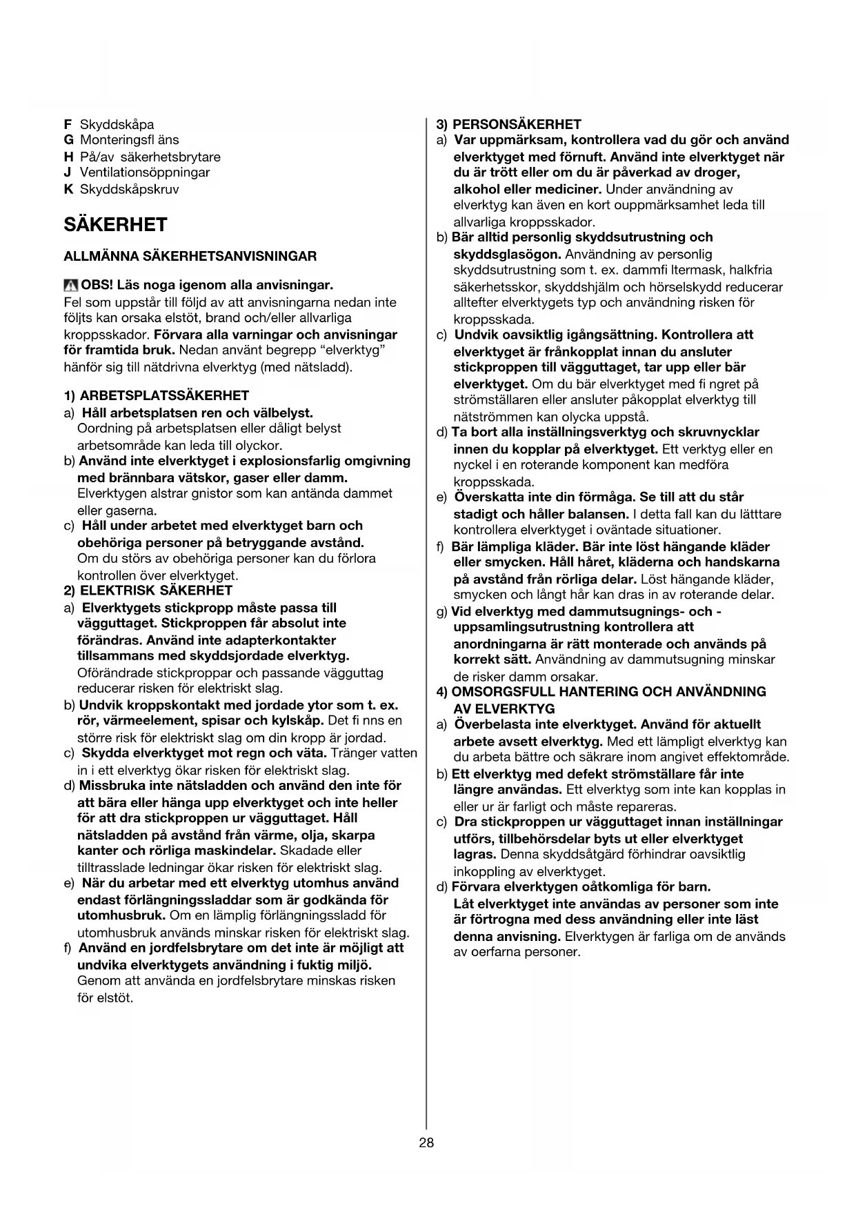 SÄKERHET ALLMÄNNA SÄKERHETSANVISNINGAR OBS! Läs noga igenom alla anvisningar.