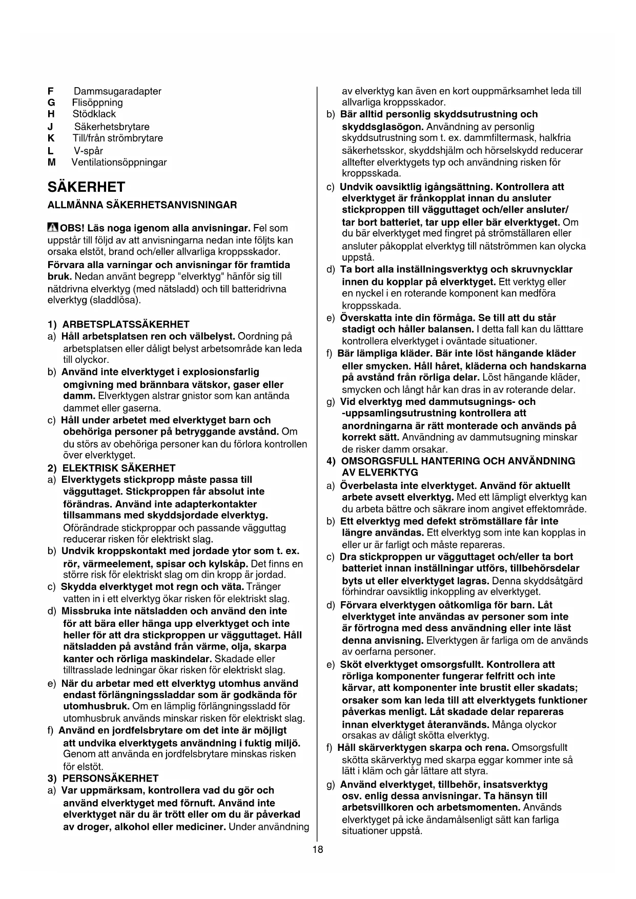 SÄKERHET ALLMÄNNA SÄKERHETSANVISNINGAR OBS!Läsnogaigenomallaanvisningar. Fel som