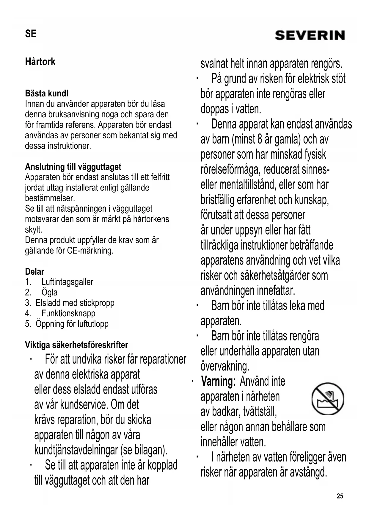 ∙ Innan hårtorken rengörs ska27