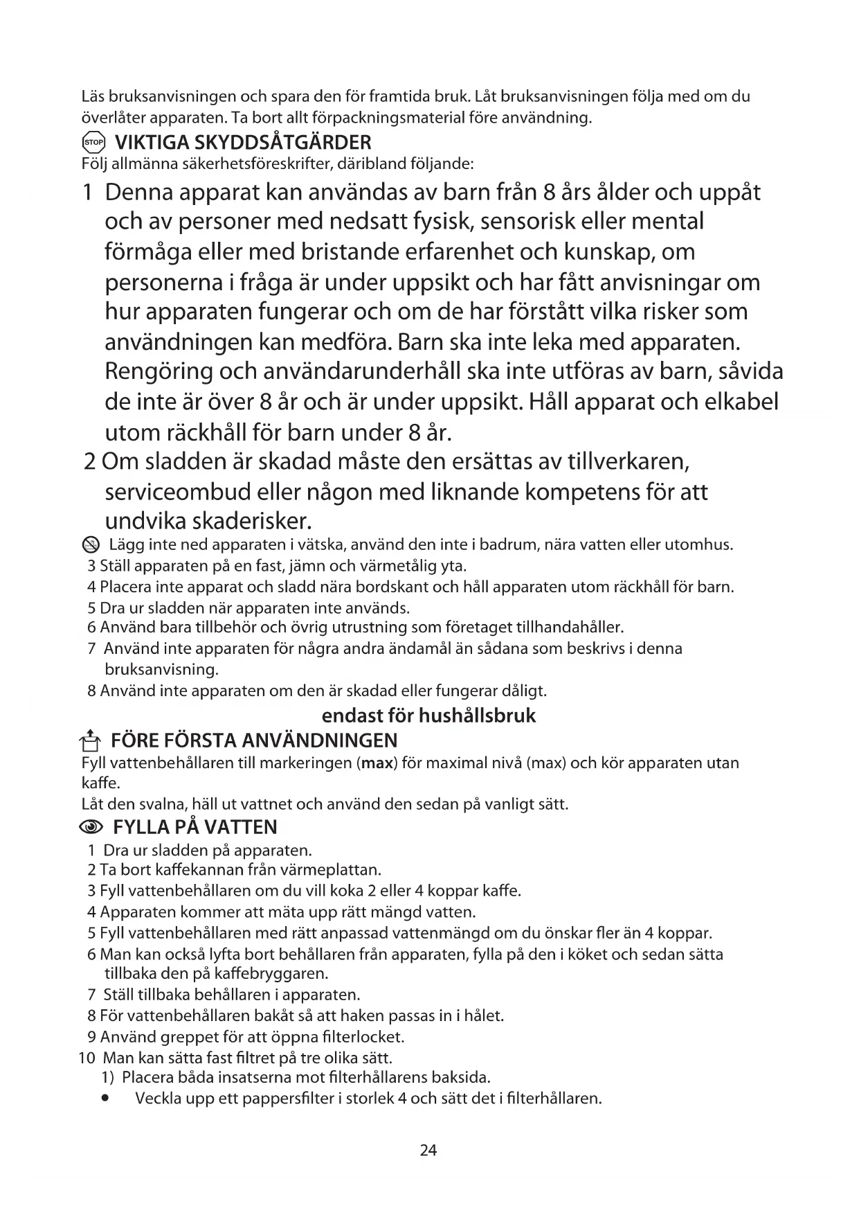24 Häll filterinnehållet i soporna och inte i avloppet.