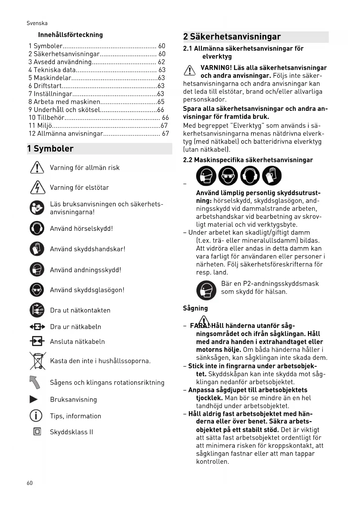 2 Säkerhetsanvisningar 60