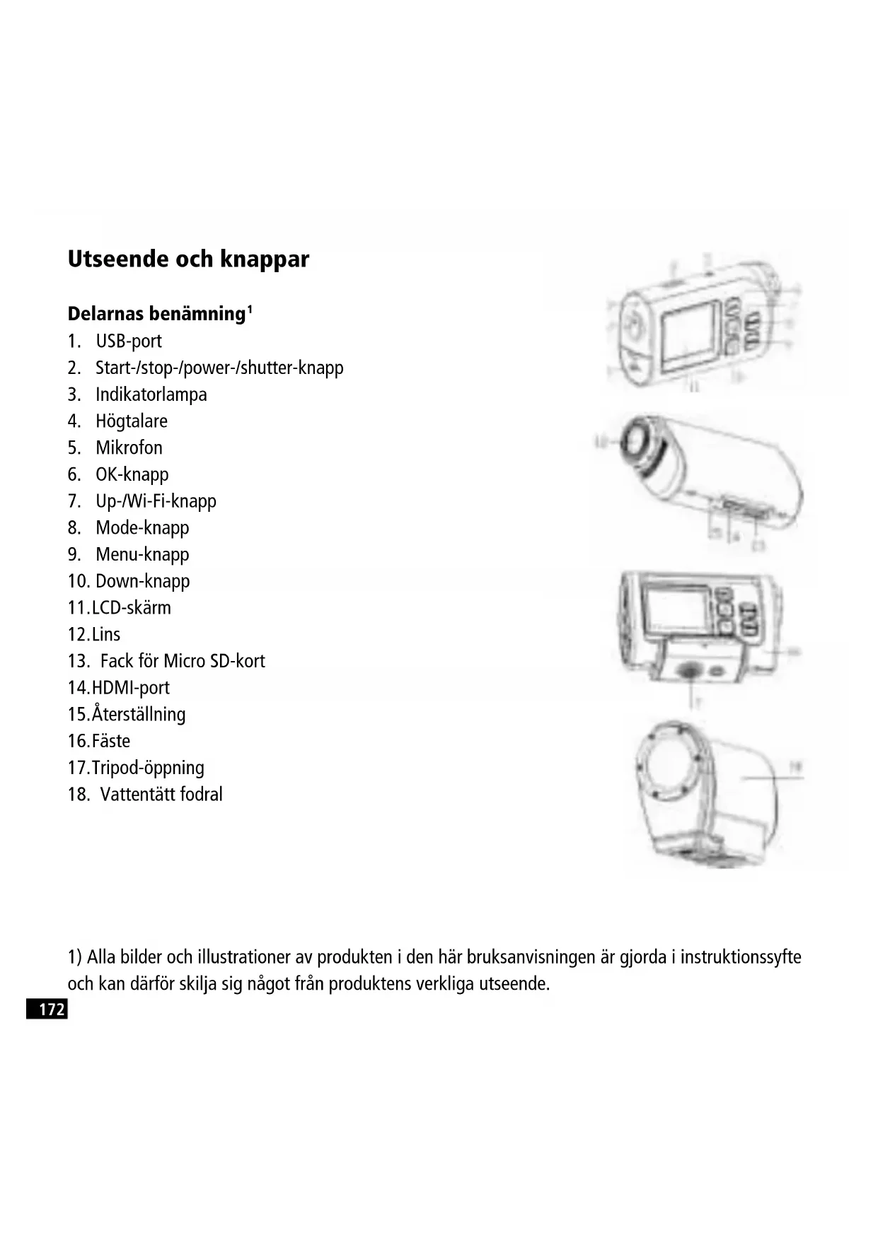 1) Alla bilder och illustrationer av produkten i den här bruksanvisningen är gjorda i instruktionssyfte