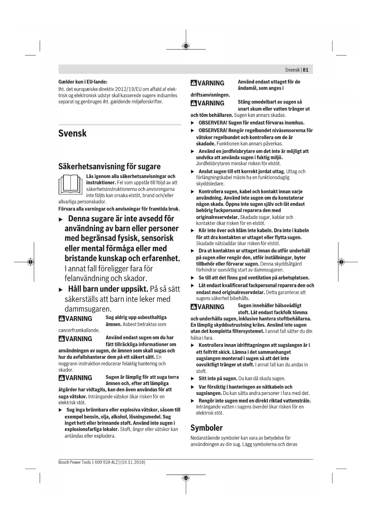 Svensk | 81 Bosch Power Tools 1 609 92A 4LZ | (19.11.2018)82 | Svensk