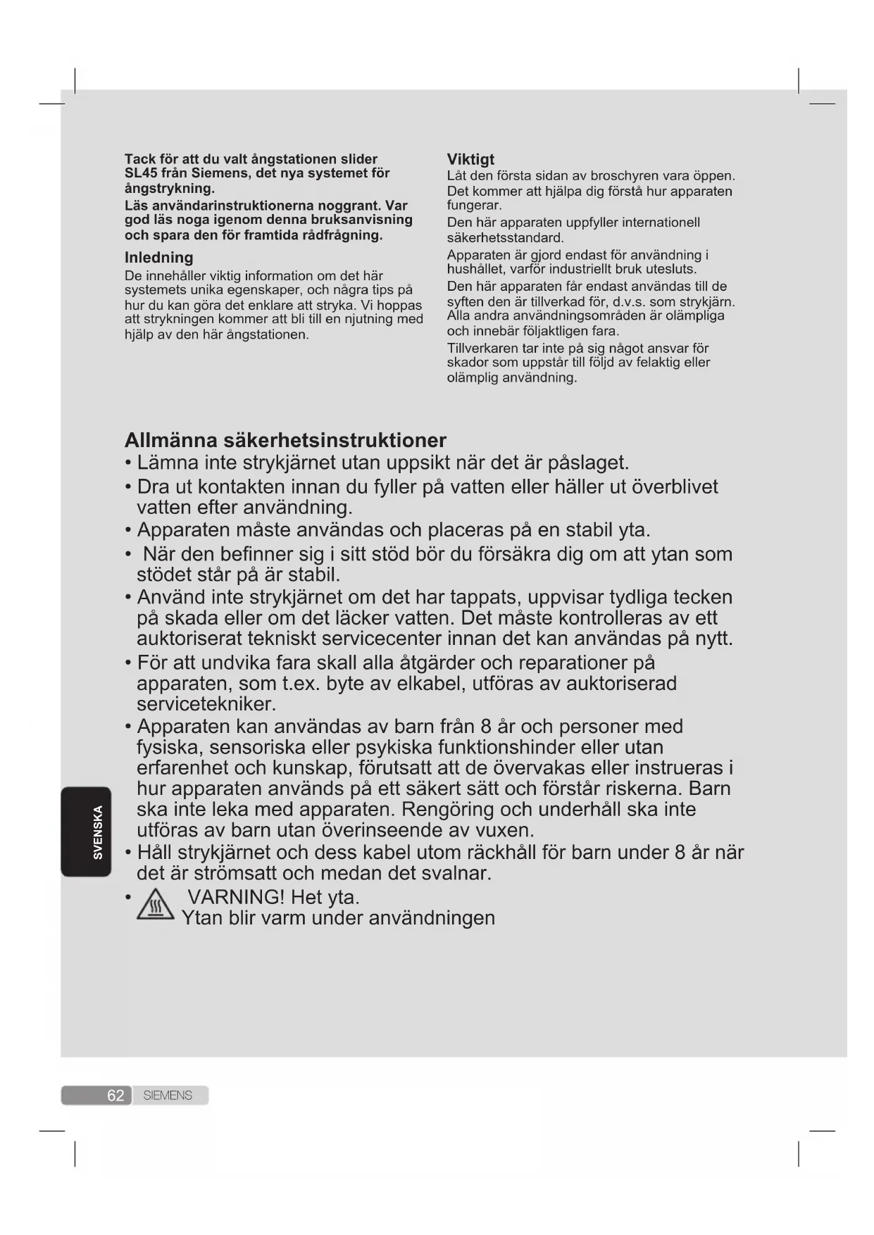Téléchargez la notice de votre Strykjärn au format PDF gratuitement ! Retrouvez votre notice TS45XTRM24 - SIEMENS et reprennez votre appareil électronique en main. Sur cette page sont publiés tous les documents nécessaires à l'utilisation de votre appareil TS45XTRM24 de la marque SIEMENS.