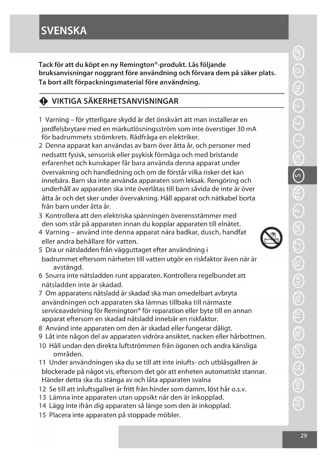 Tack för att du köpt en ny Remington®-produkt. Läs följande