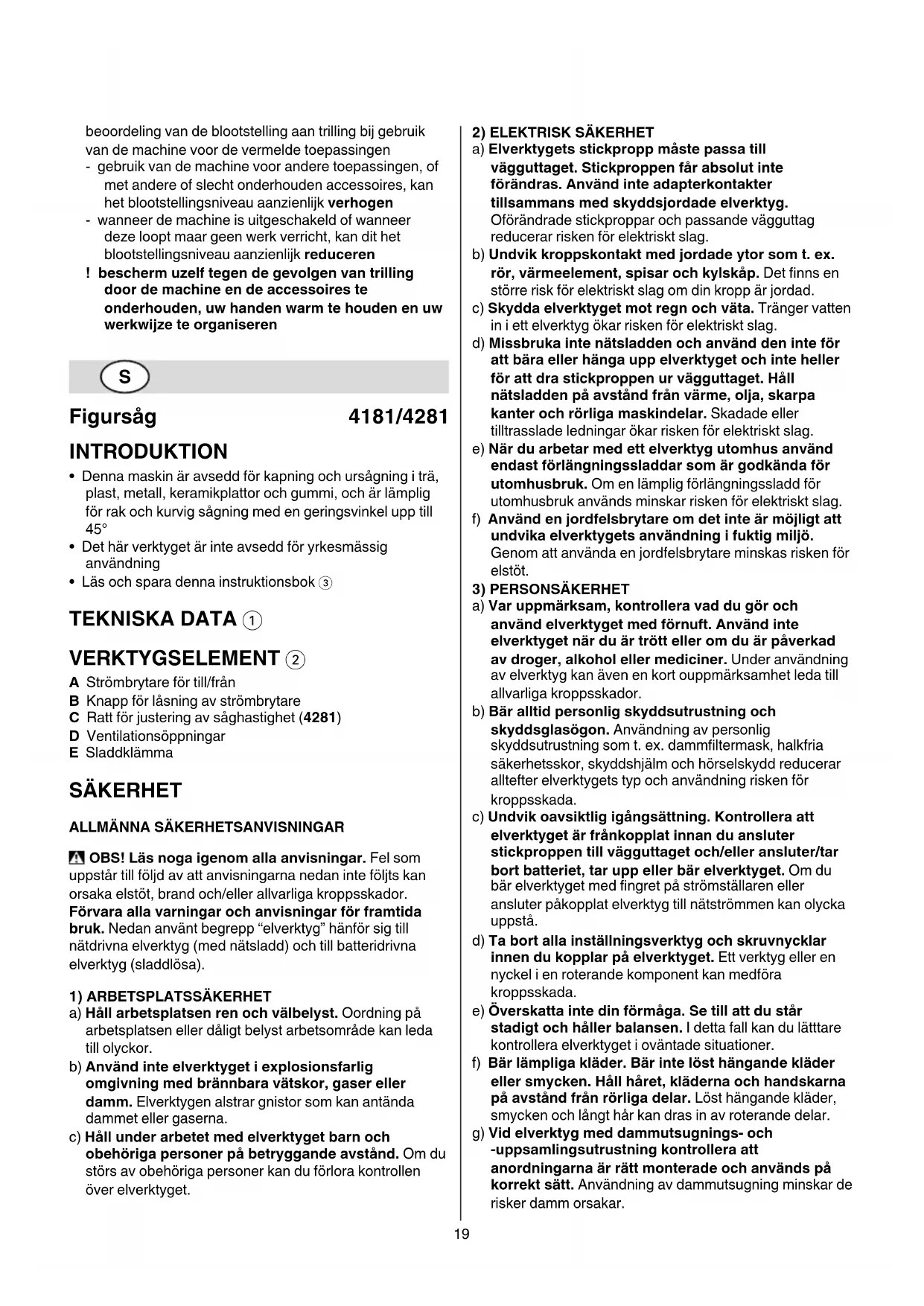 SÄKERHET ALLMÄNNA SÄKERHETSANVISNINGAR OBS! Läs noga igenom alla anvisningar. Fel som