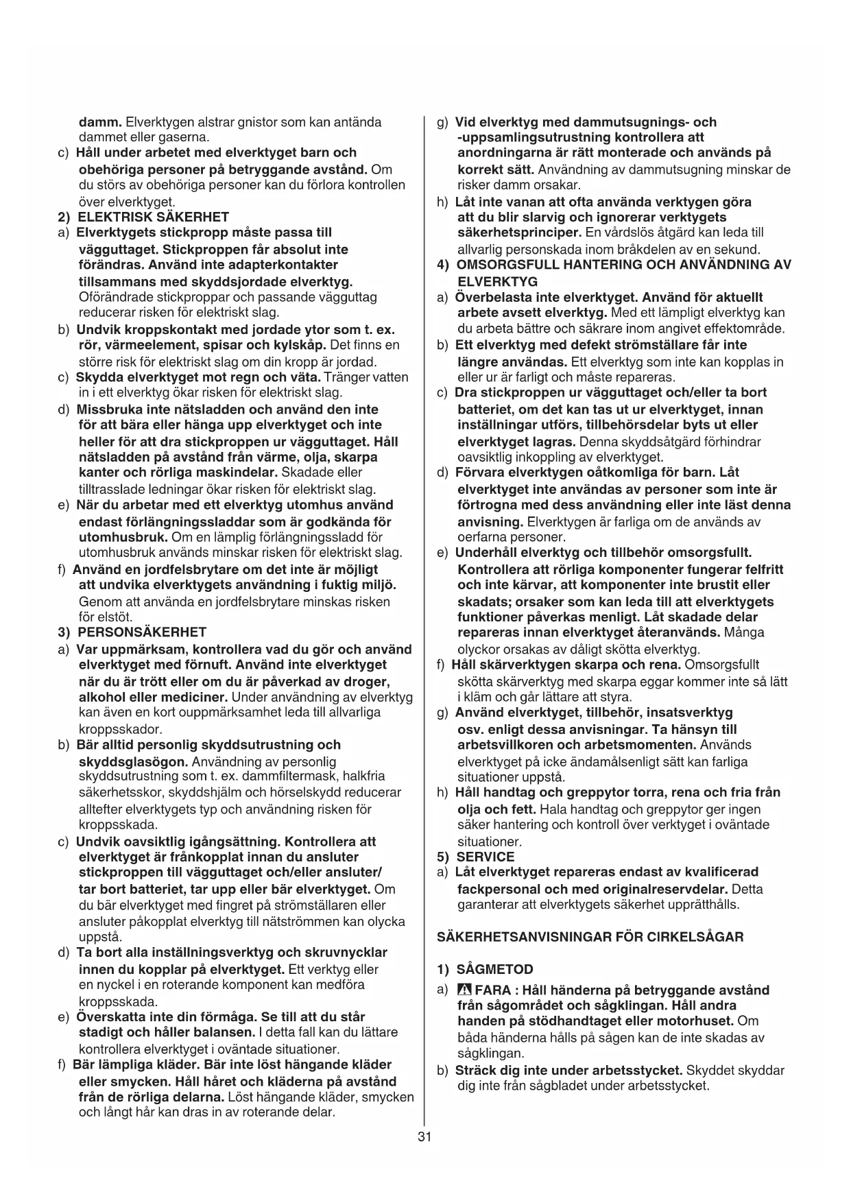 SÄKERHETSANVISNINGAR FÖR CIRKELSÅGAR