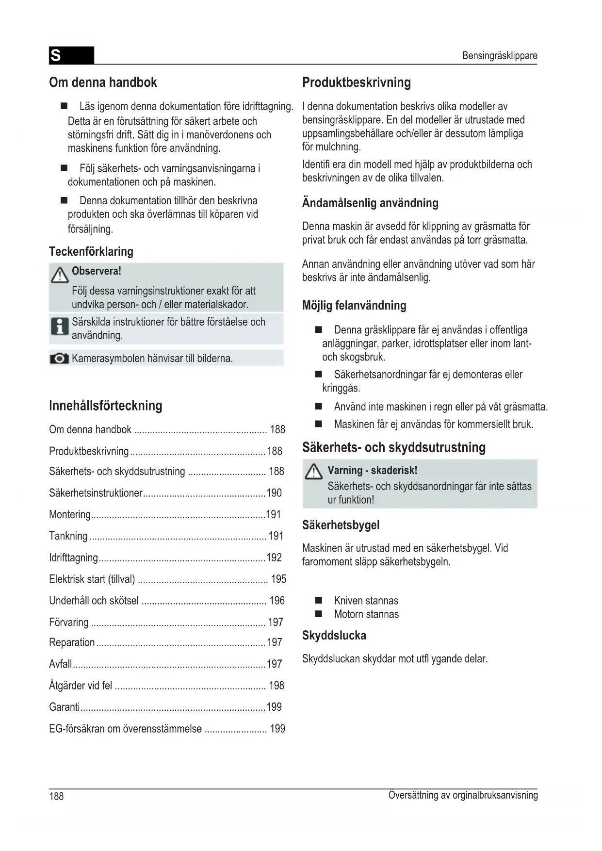 Säkerhetsinstruktioner 190