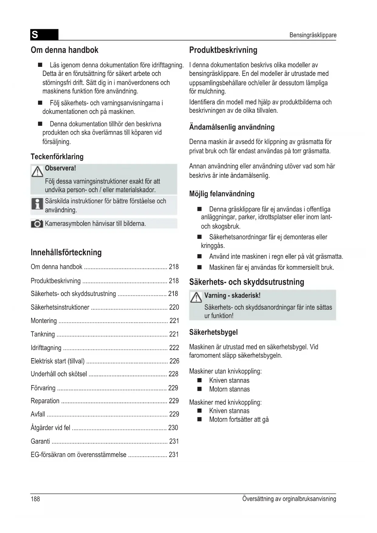 Denna maskin är avsedd för klippning av gräsmatta för