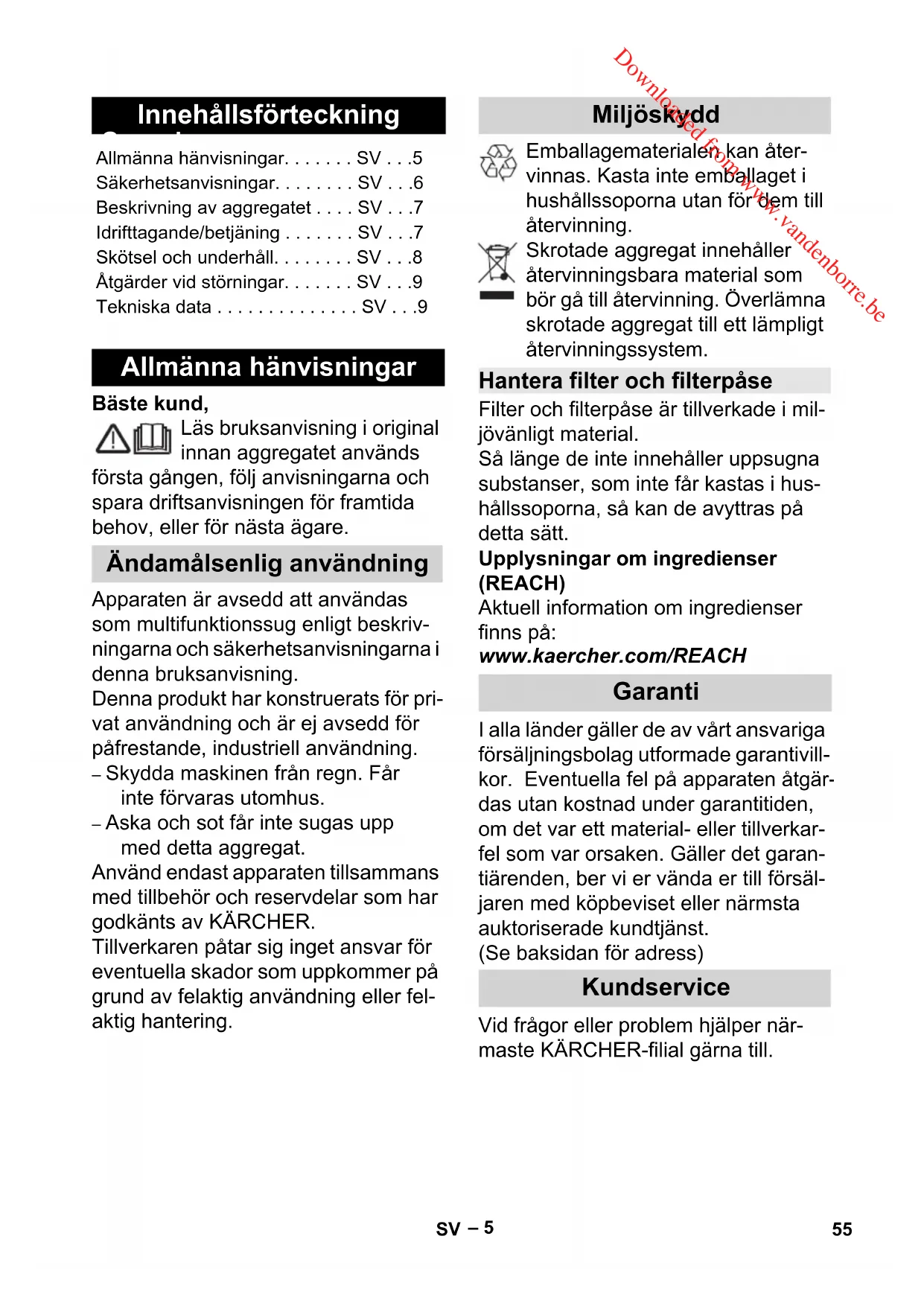 MV 2 - Dammsugare Kärcher - Notice d'utilisation et mode d'emploi gratuit