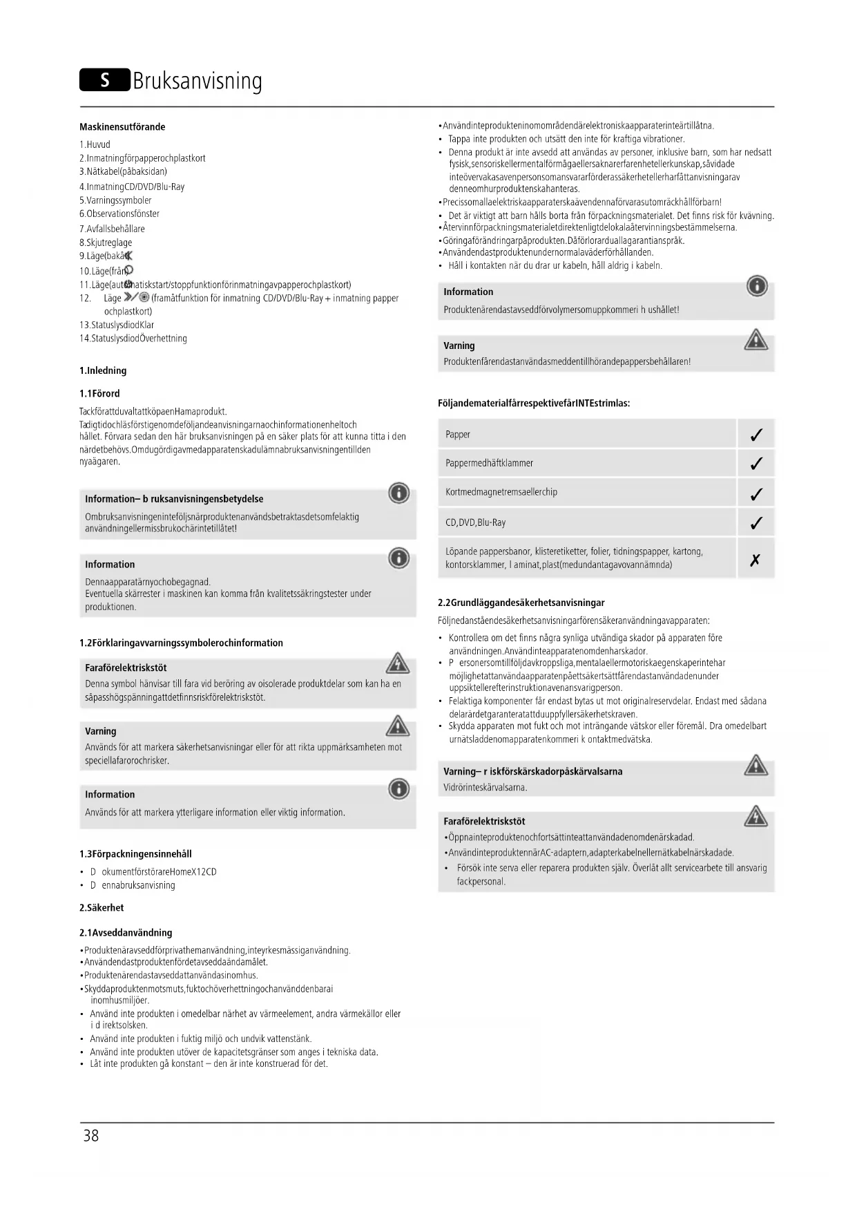 Ta dig tid och läs först igenom de följande anvisningarna och informationen helt och