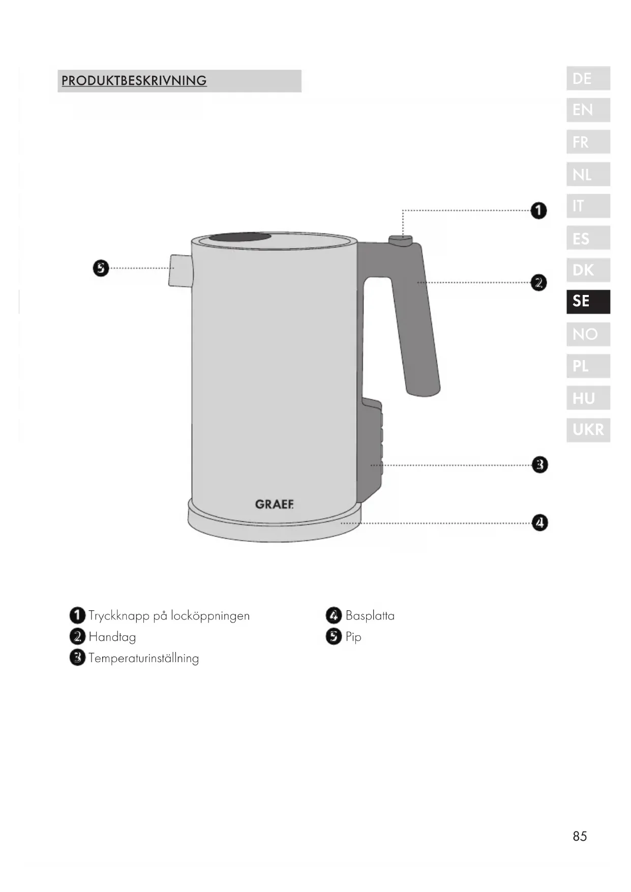 FÖRORD Kära kund, med köpet av den här vattenkokaren har du gjort ett bra val. Du har köpt en erkänd kvalitets- produkt. Vi tackar dig för ditt köp och önskar dig mycket nöje med vattenkokaren från Graef.