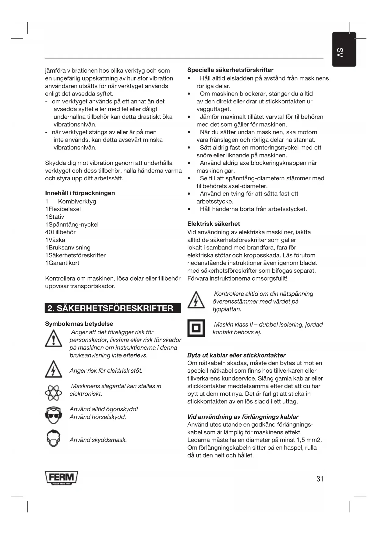2. SÄKERHETSFÖRESKRIFTER