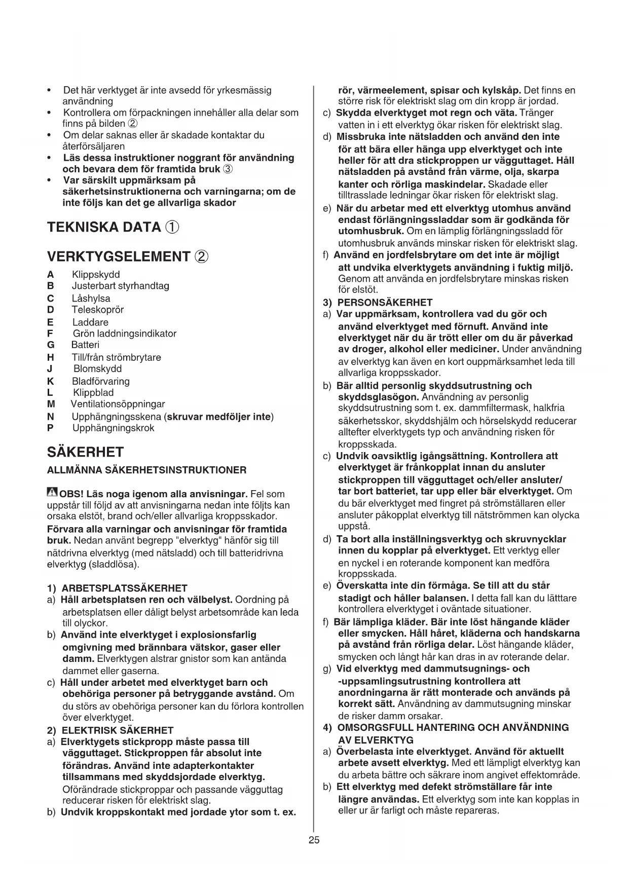 SÄKERHET ALLMÄNNA SÄKERHETSINSTRUKTIONER OBS! Läs noga igenom alla anvisningar. Fel som
