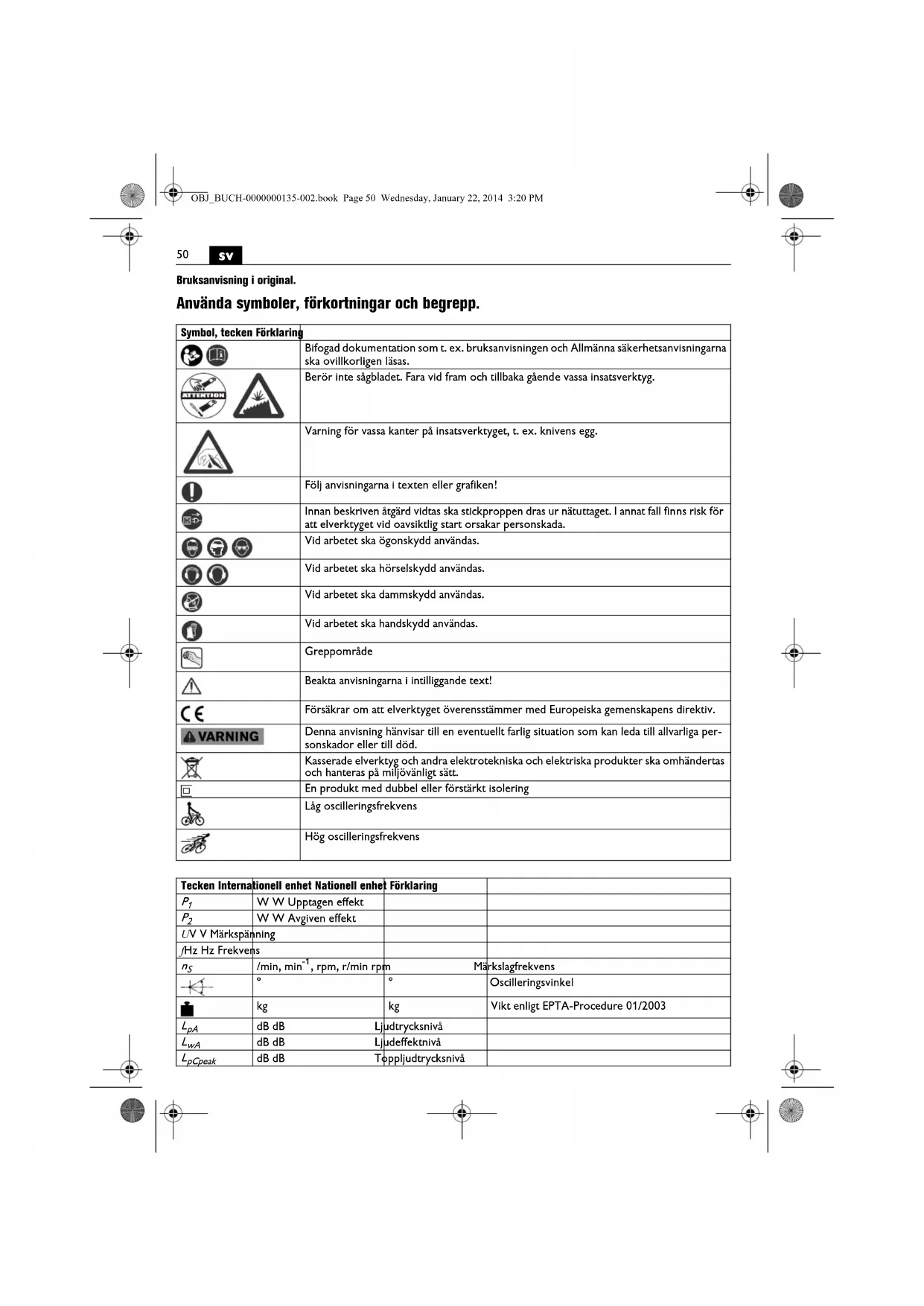 Använd inte detta elverktyg innan du nogrant last och fullstandigt forst相关政策 Instruktionsbok samt bifogade „Allmänna säkerhetsanvisingar“