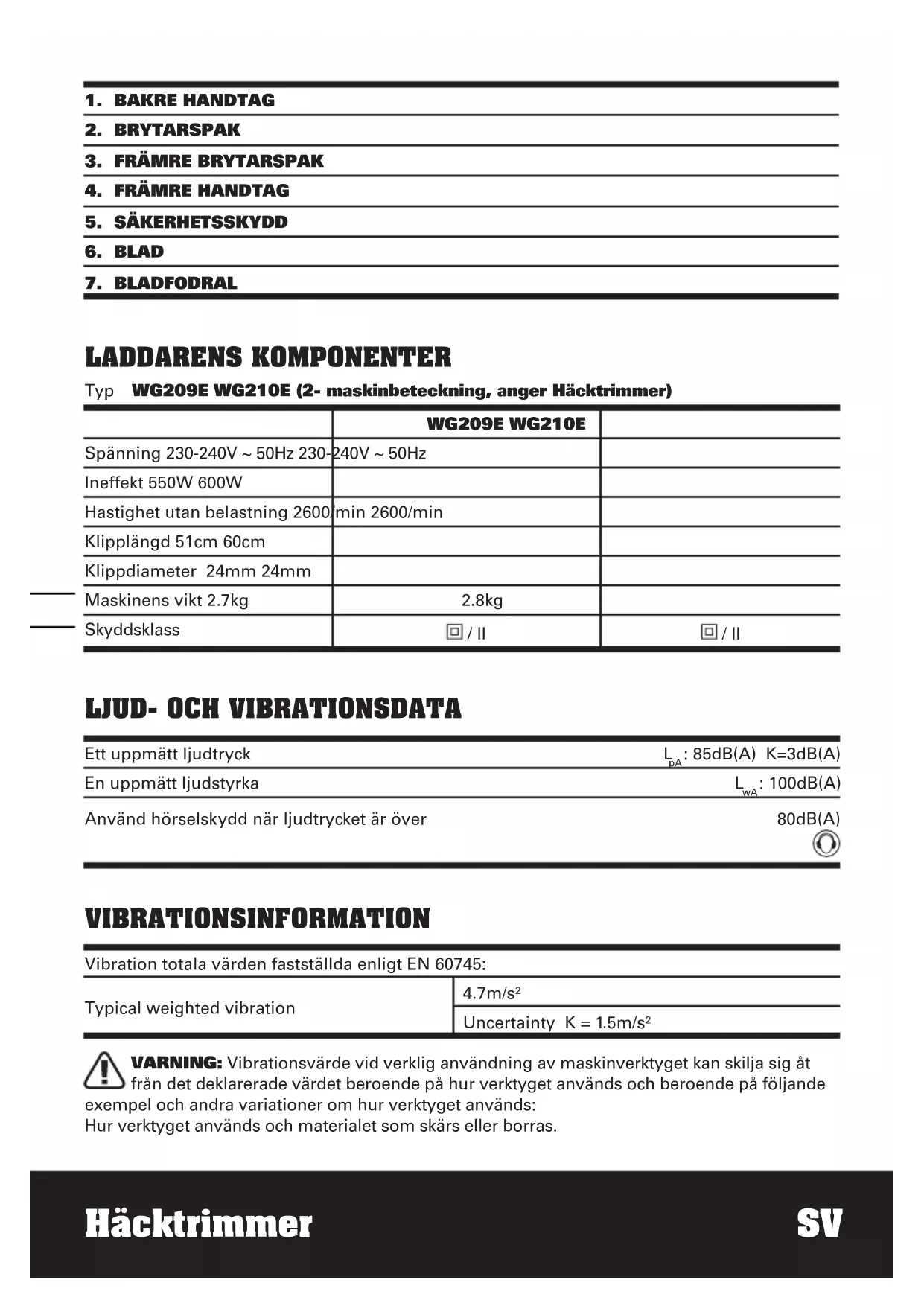 BRUKSANVISNING WG209E WORX