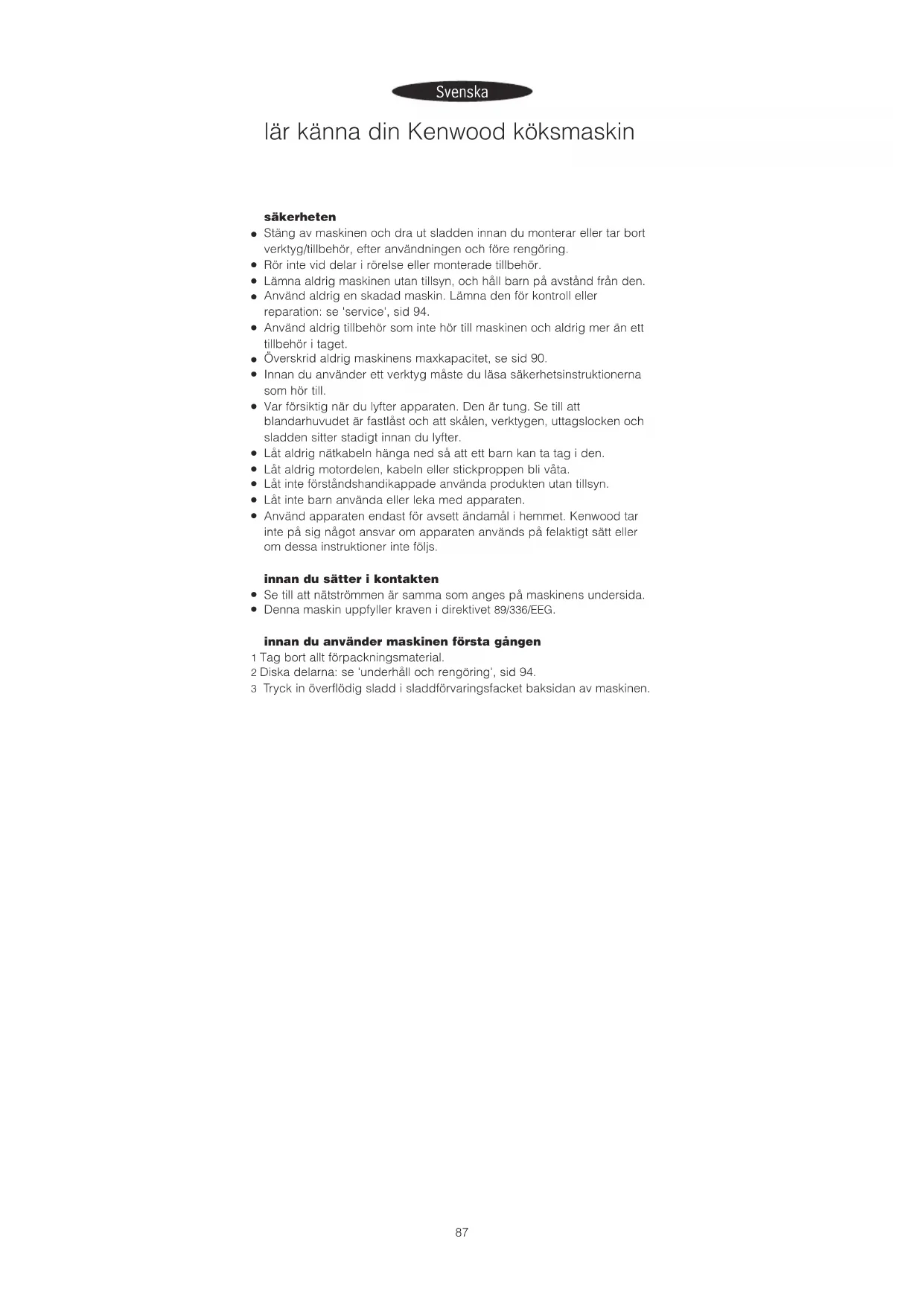 Använd apparaten endast för avsett ändamål i hemmet. Kenwood tar