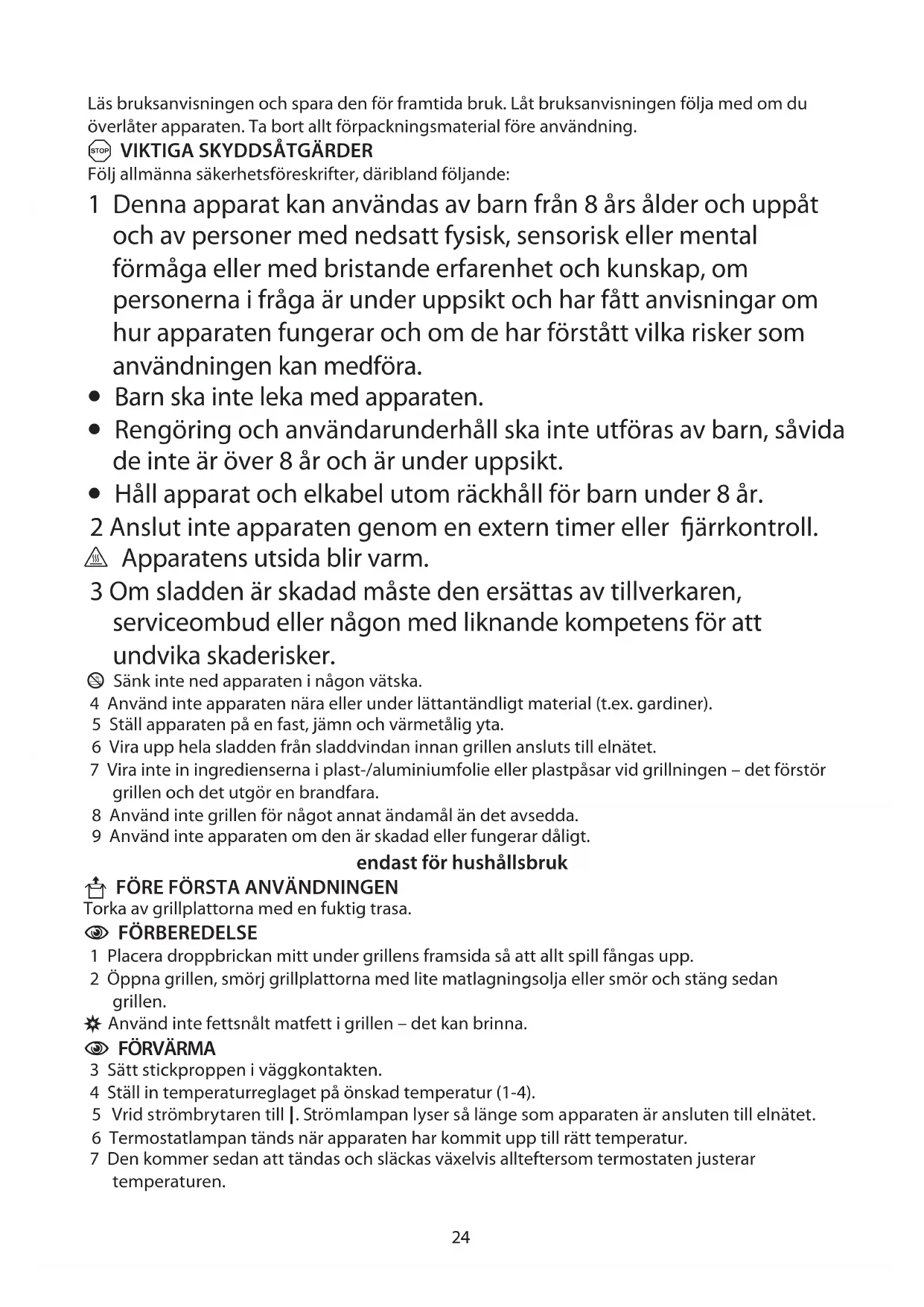 8 Använd inte grillen för något annat ändamål än det avsedda.