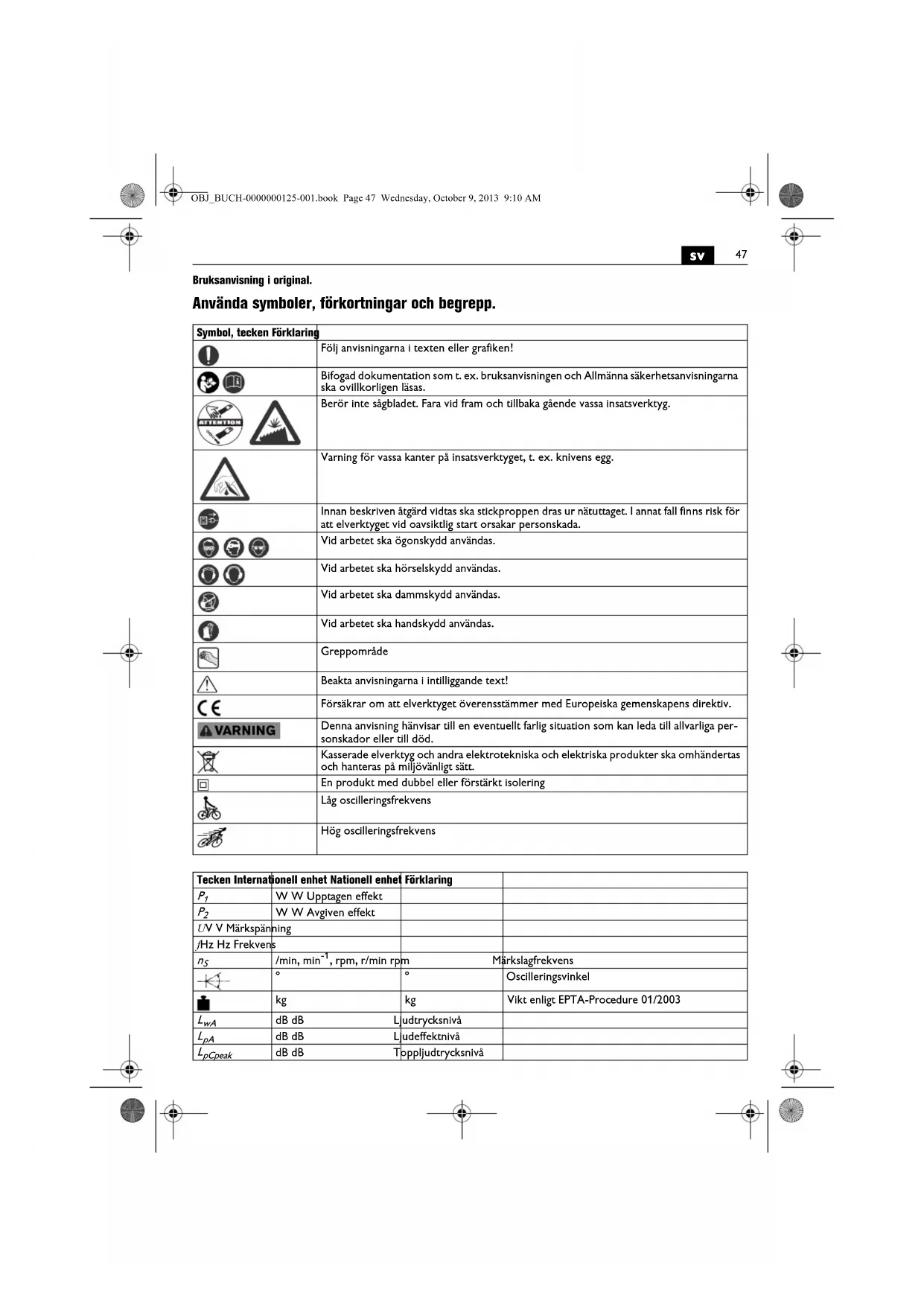 Använd inte detta elverktginn anu noggrant last och fullstandigt forstitta instruktionsbok samt bifogade „Allmanna säkerhetsanvisningar“