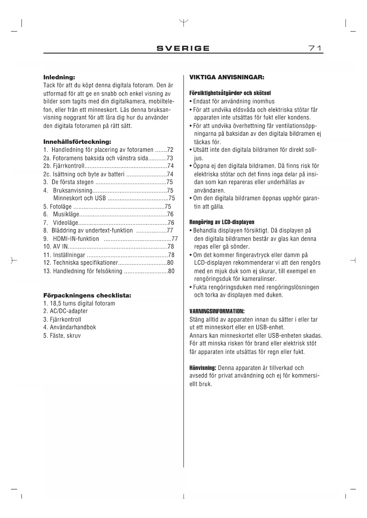 Tack för att du köpt denna digitala fotoram. Den är