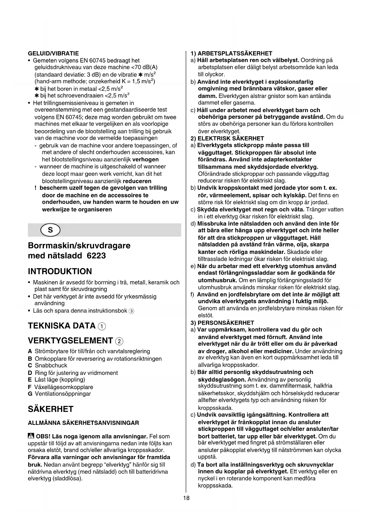 SÄKERHET ALLMÄNNA SÄKERHETSANVISNINGAR OBS! Läs noga igenom alla anvisningar. Fel som