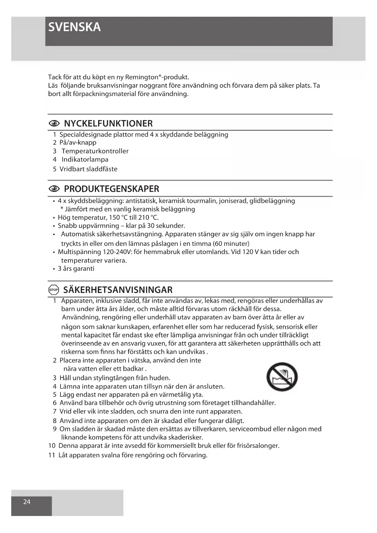 S6280 - Plattång REMINGTON - Gratis bruksanvisning och manual