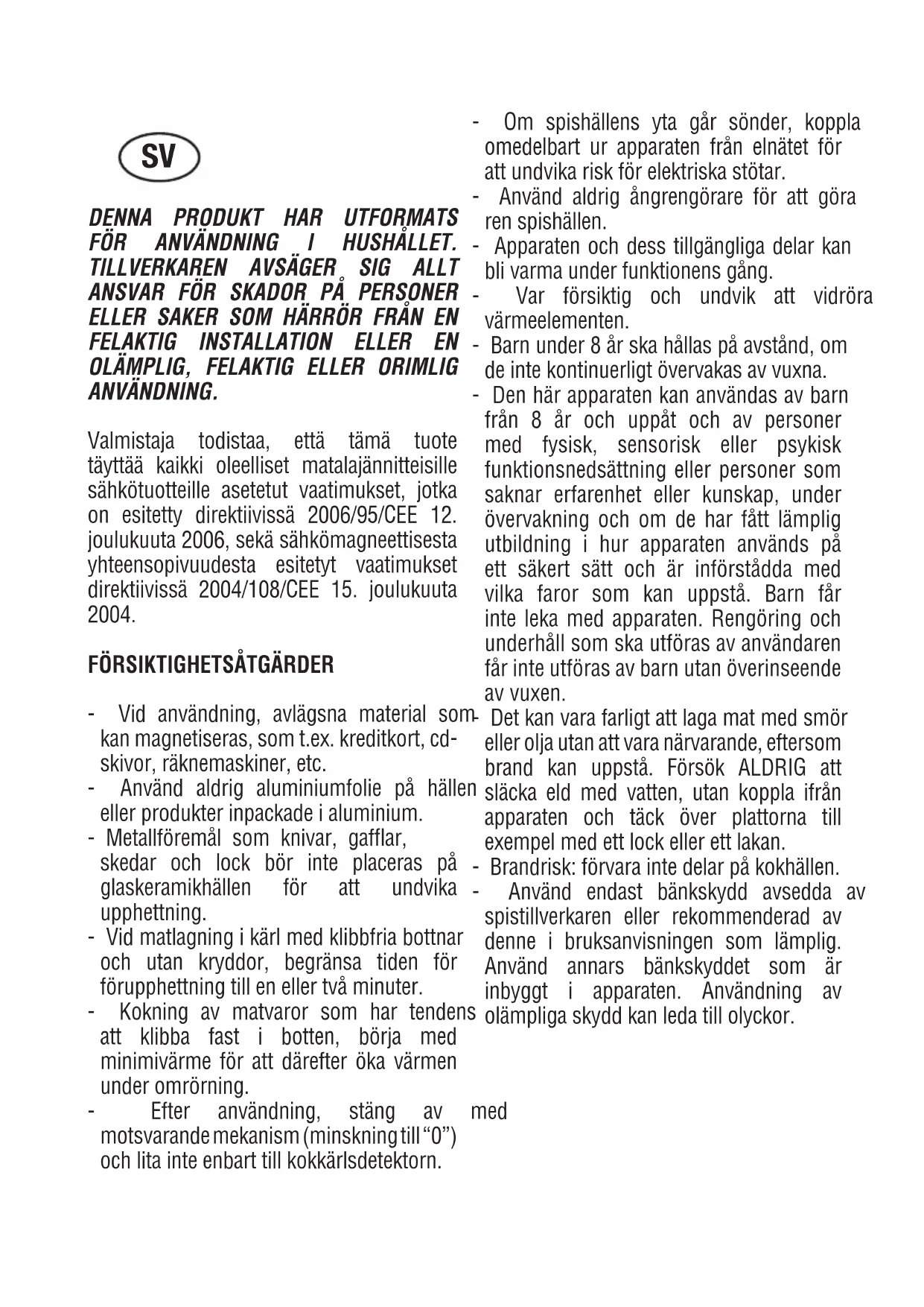 - Följande kokkärl är inte lämpliga: glas, keramik, lergods,