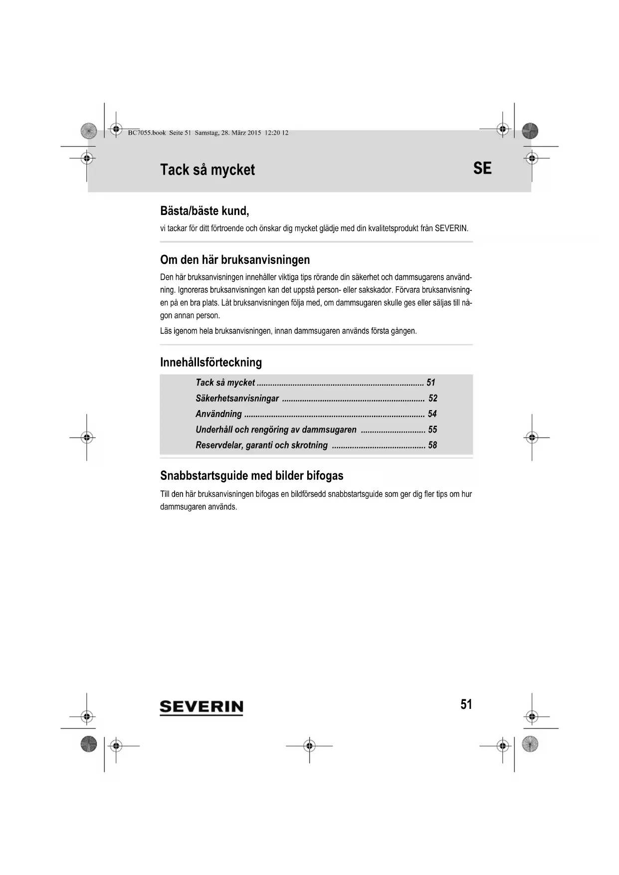 vi tackar för ditt förtroende och önskar dig mycket glädje med din kvalitetsprodukt från SEVERIN.