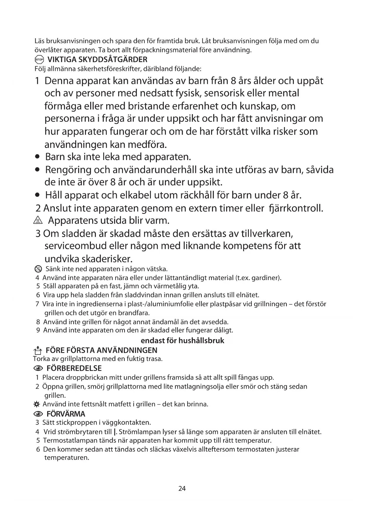 8 Använd inte grillen för något annat ändamål än det avsedda.