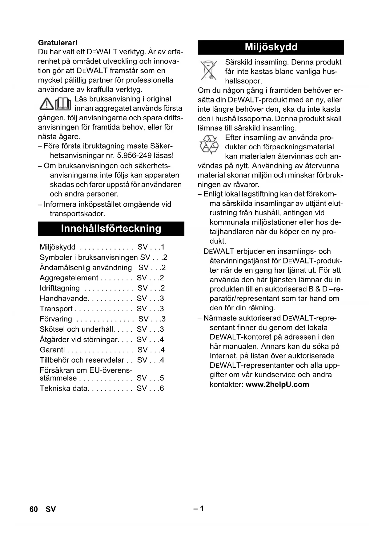 hos ditt D EWALT verktyg har du möjlighet att återlämna det, komplett så som inköpt,