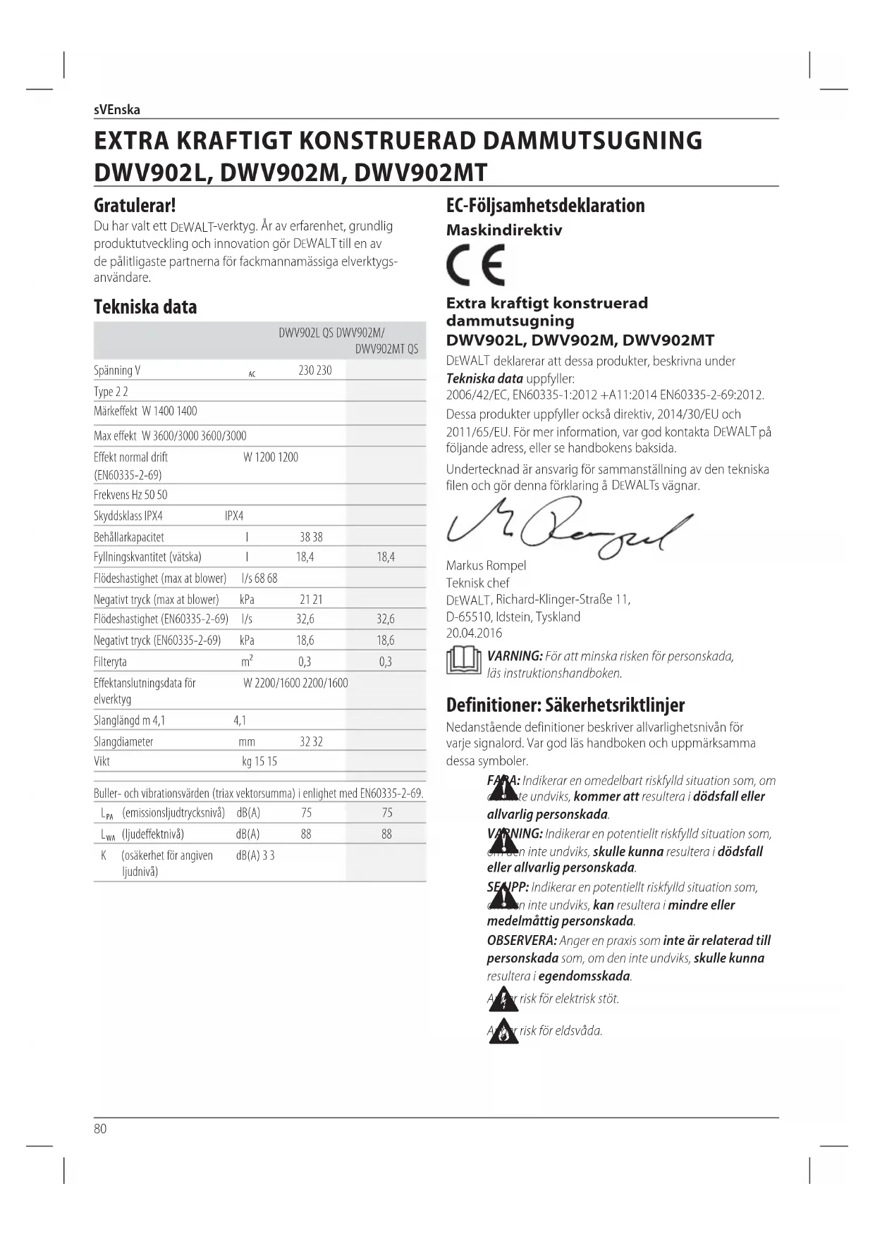 Hitta enhetens manual gratis DWV902L DEWALT i PDF-format.
