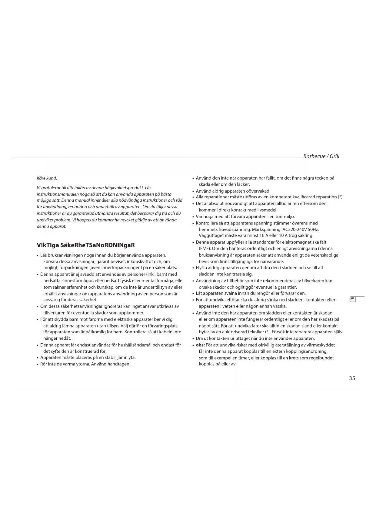 • Denna apparat uppfyller alla standarder för elektromagnetiska fält