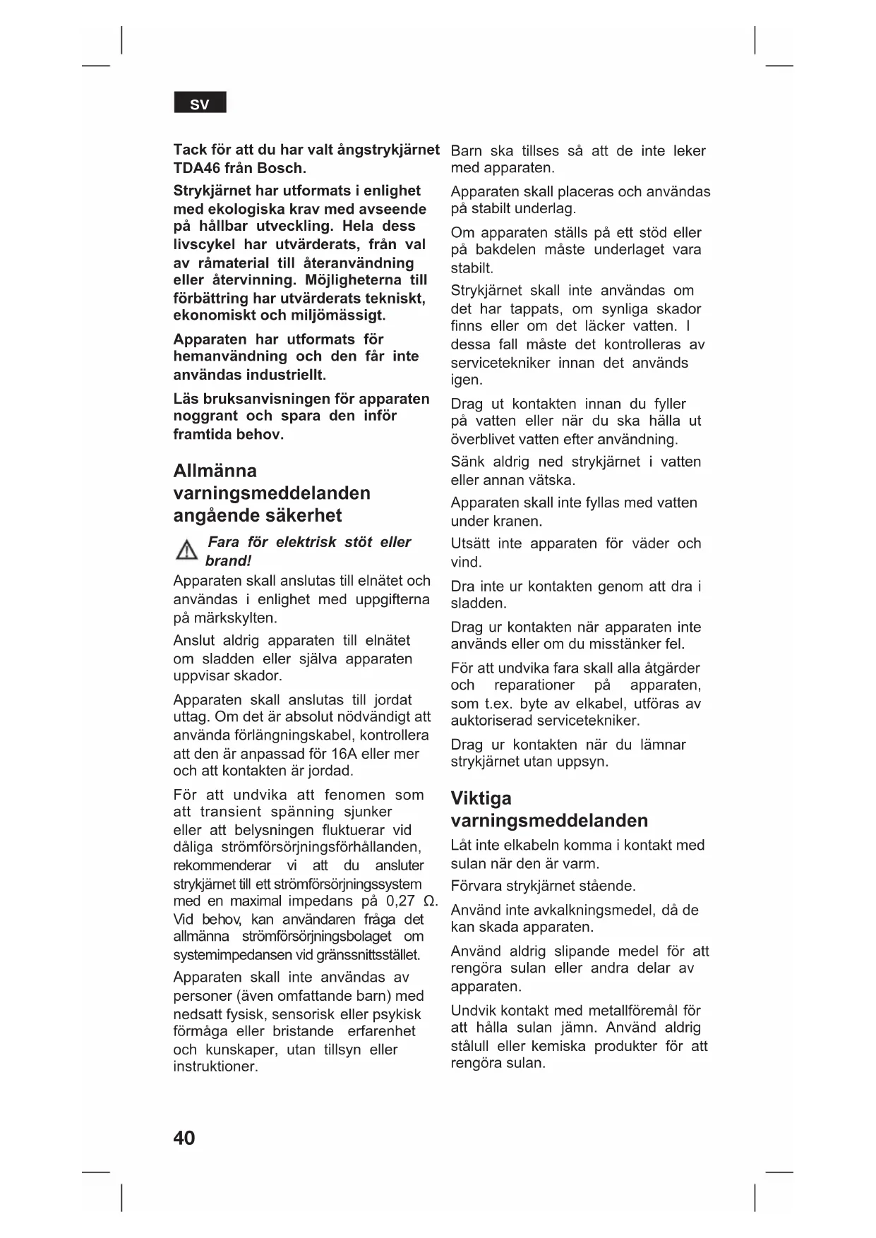 Hitta enhetens manual gratis TDA4630 sensixx B3 secure Steam BOSCH i PDF-format.