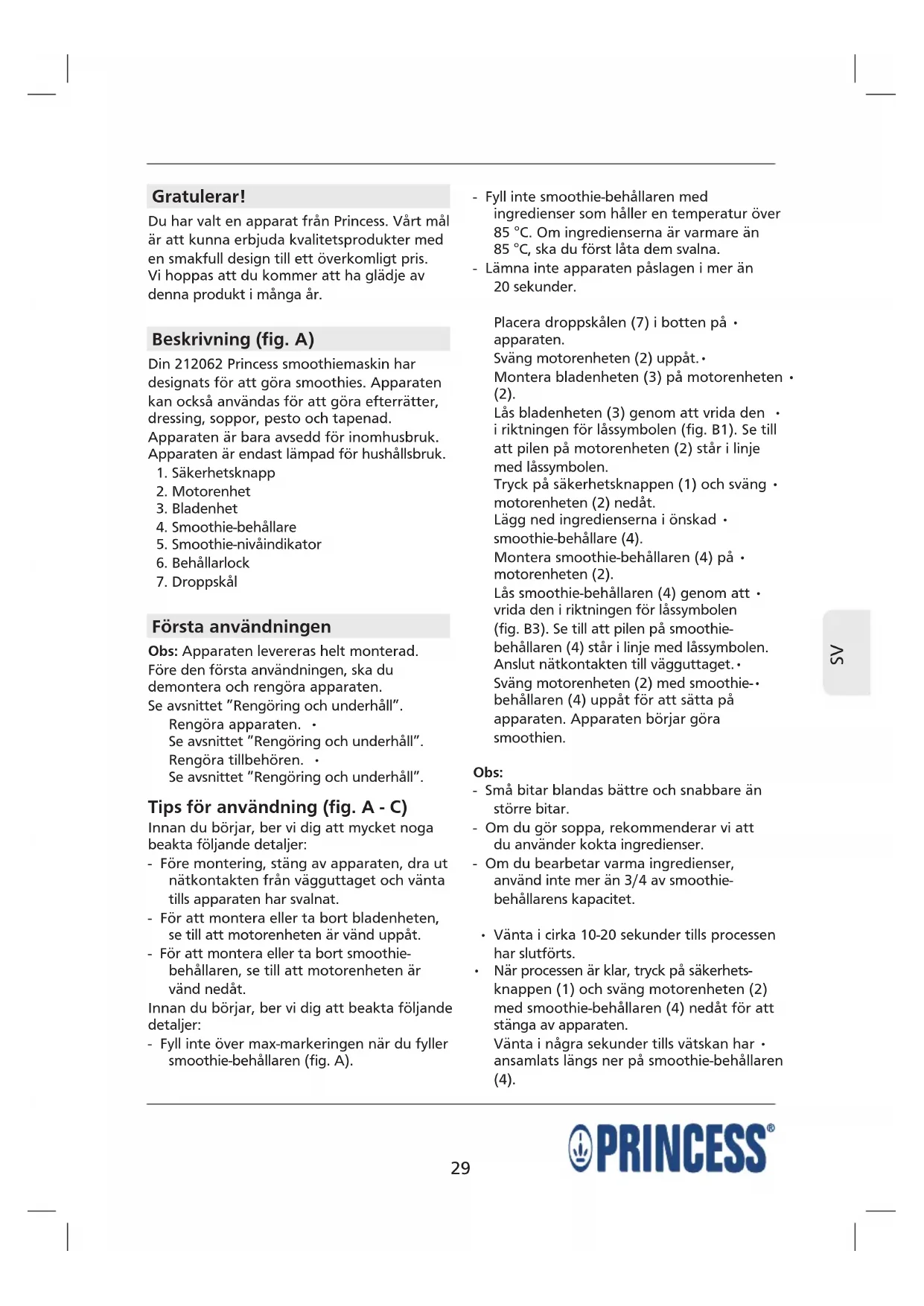 Hitta enhetens manual gratis Smoothie Maker 212062 PRINCESS i PDF-format.