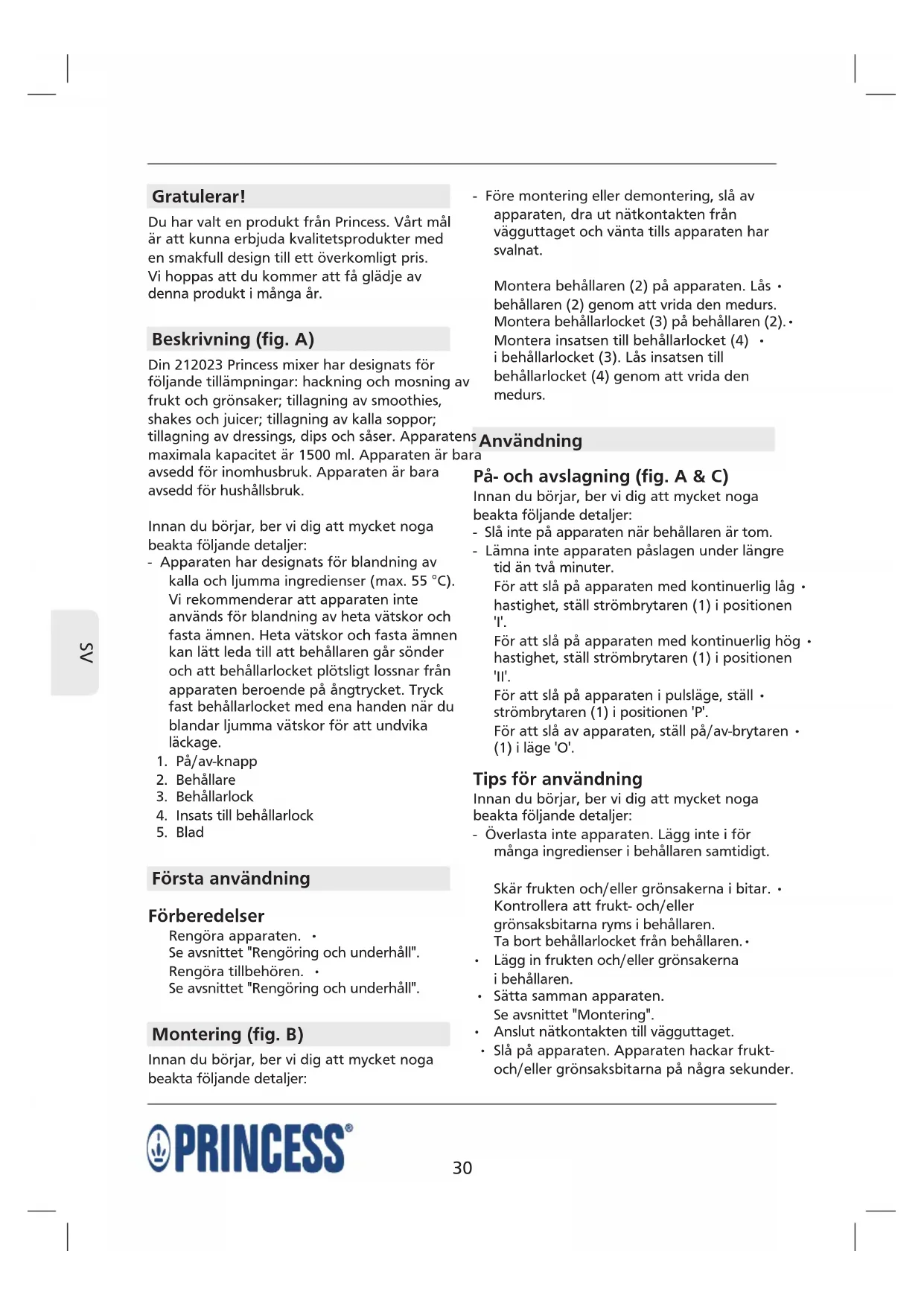 Power Blender - Mixer PRINCESS - Notice d'utilisation et mode d'emploi gratuit