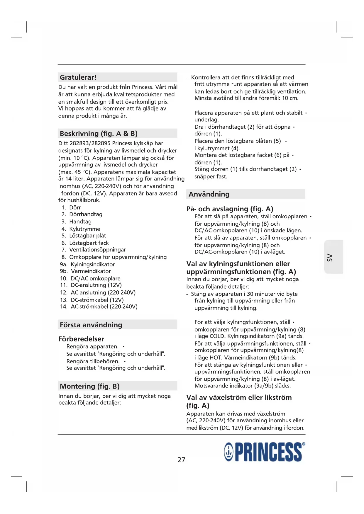 282893 - Kylskåp PRINCESS - Notice d'utilisation et mode d'emploi gratuit