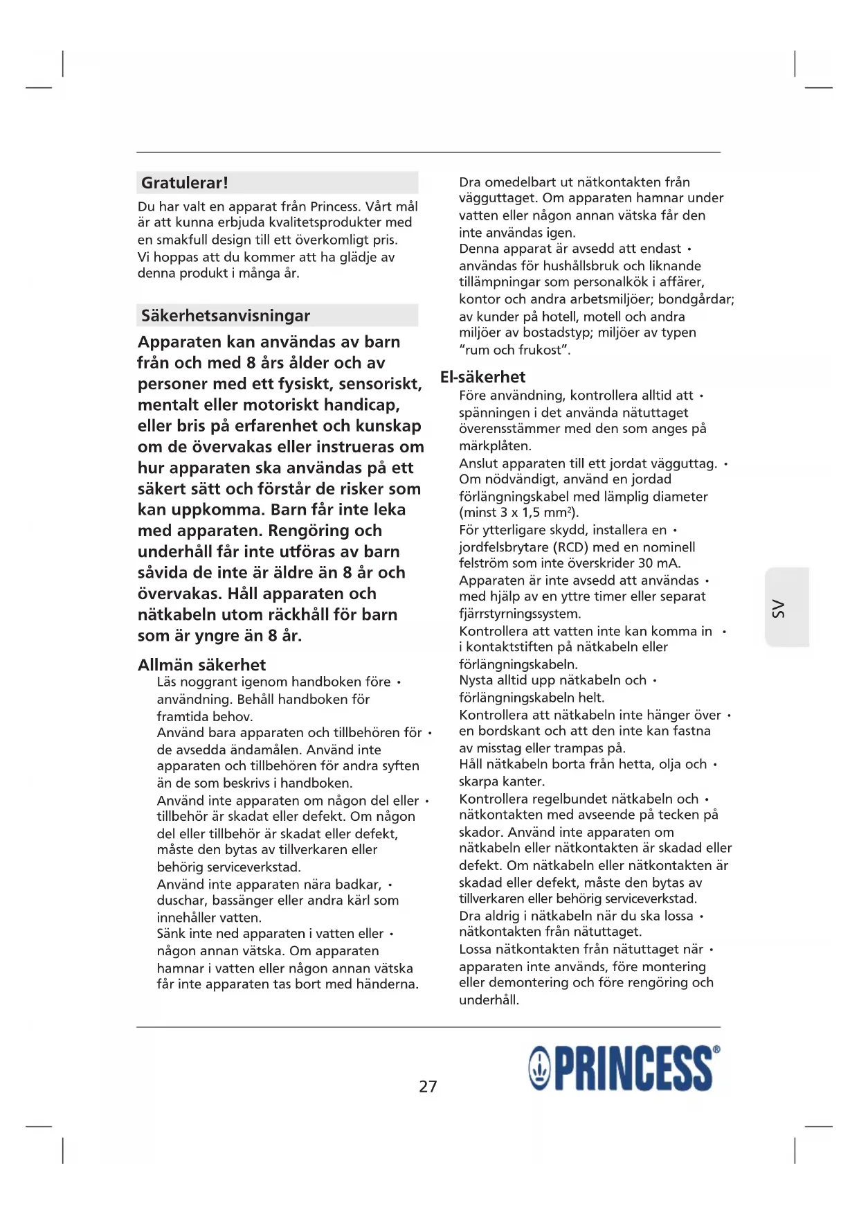 Du har valt en apparat från Princess. Vårt mål