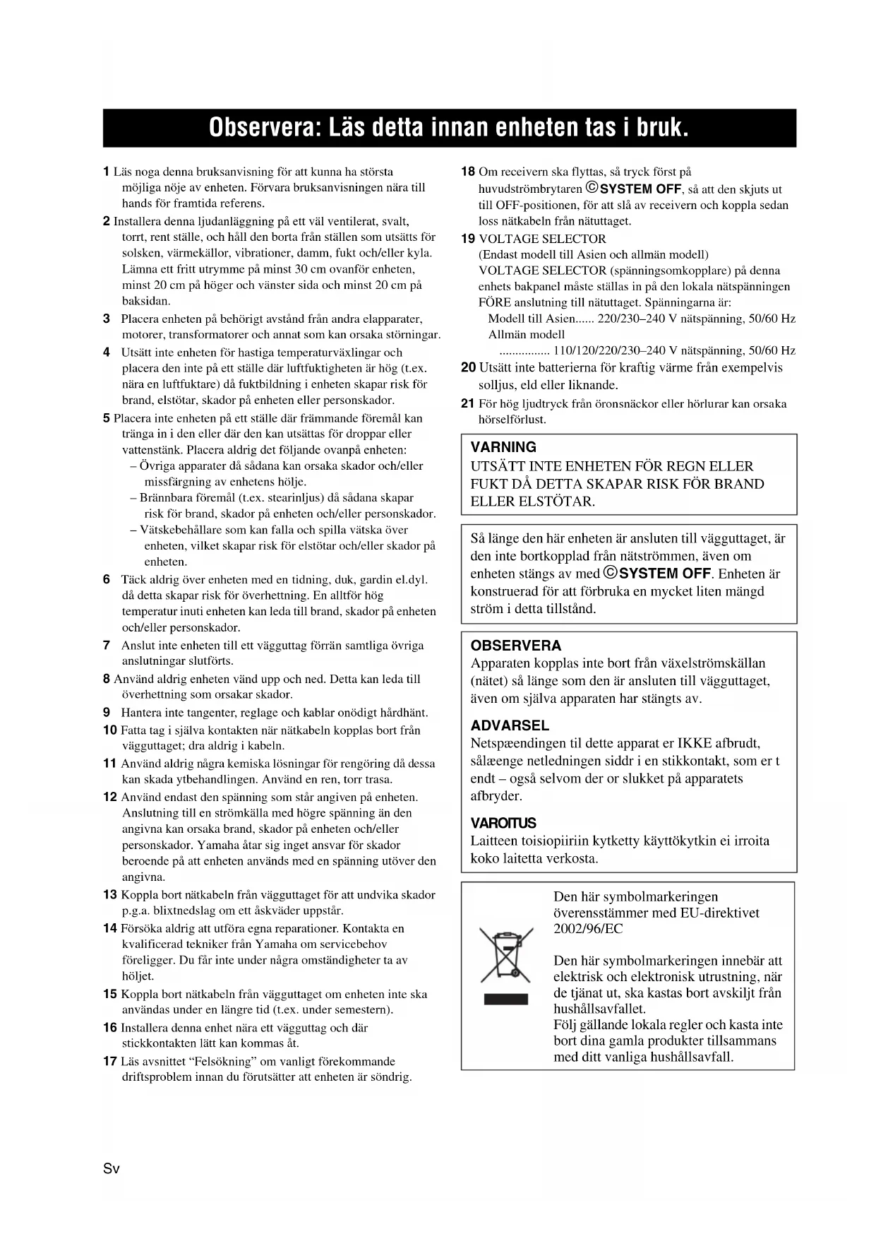 2002/96/EC Den här symbolmarkeringen innebär att