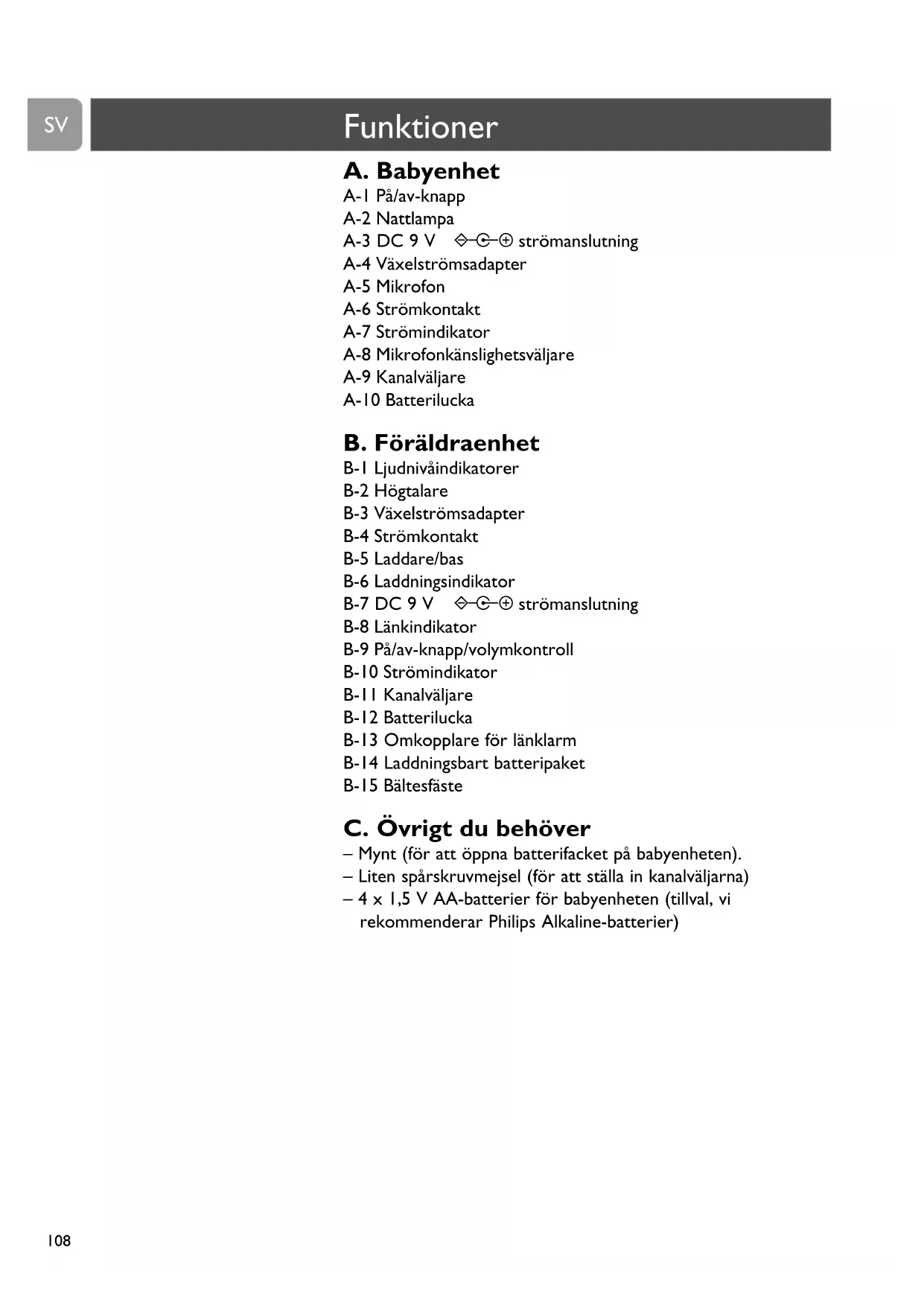 – 4 x 1,5 V AA-batterier för babyenheten (tillval, vi