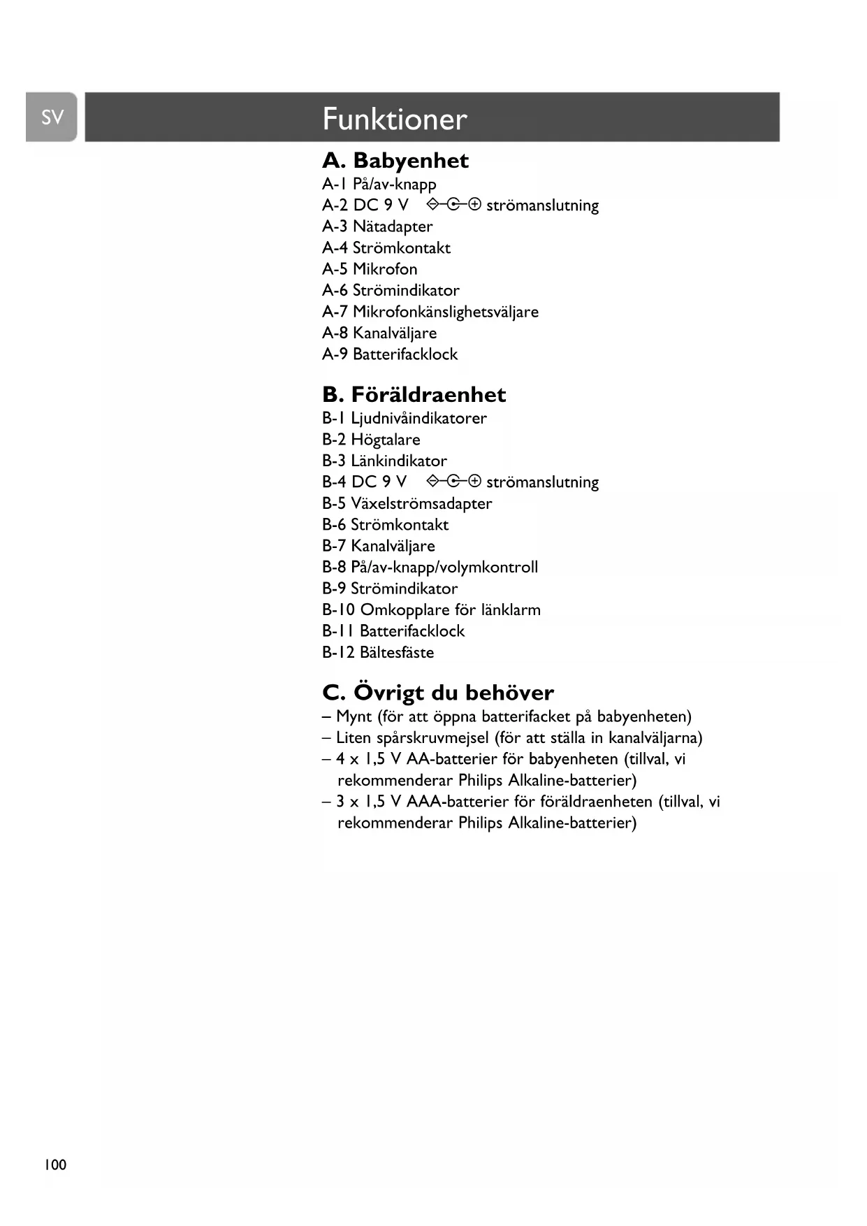 babyenhet eller föräldraenhet (utom batterifacken).