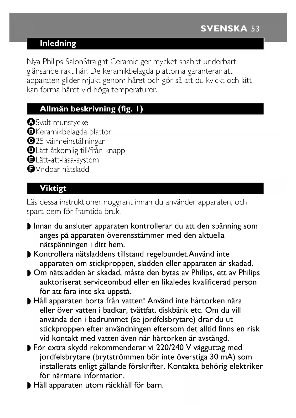 nätsladden är skadad måste den bytas ut av Philips, ett av Philips