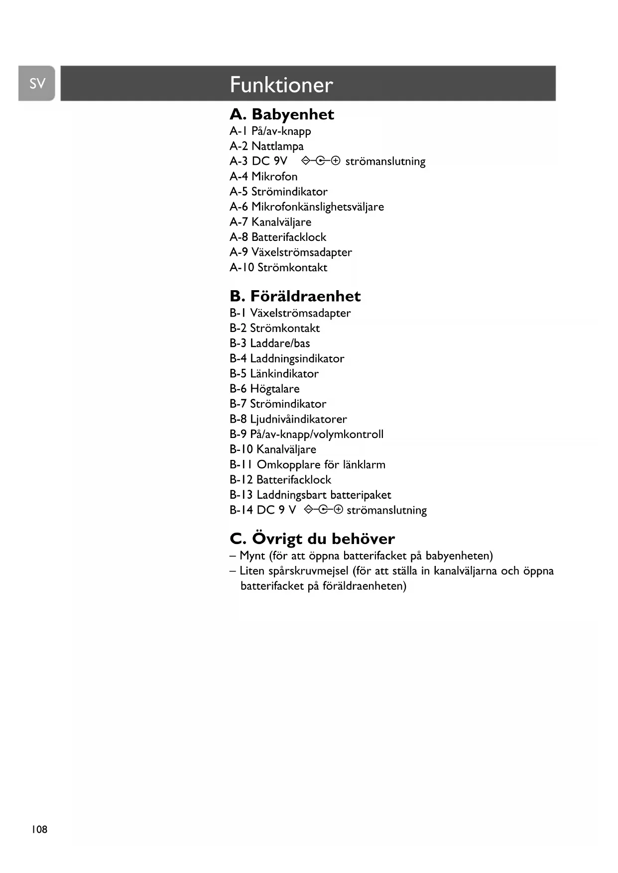 – Mynt (för att öppna batterifacket på babyenheten)