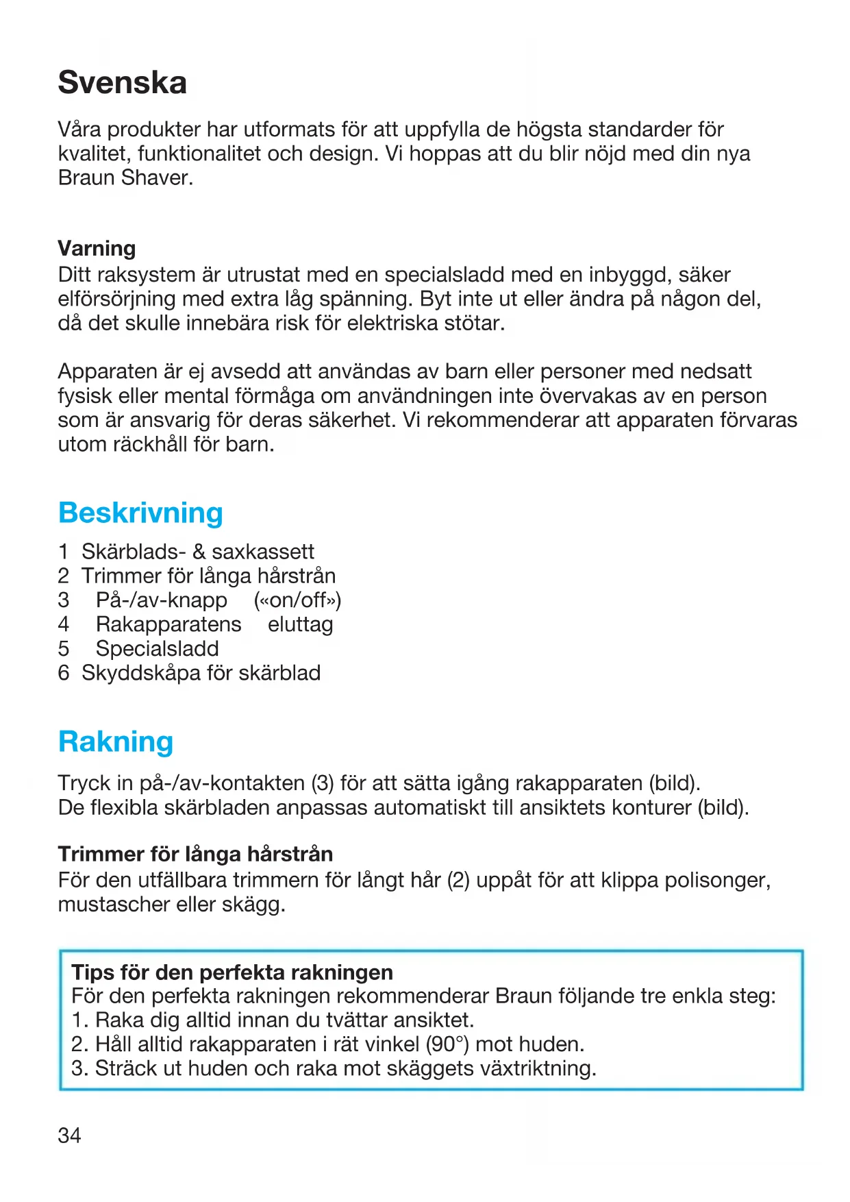 Varning: Koppla loss nätsladden från rakapparaten innan den rengörs