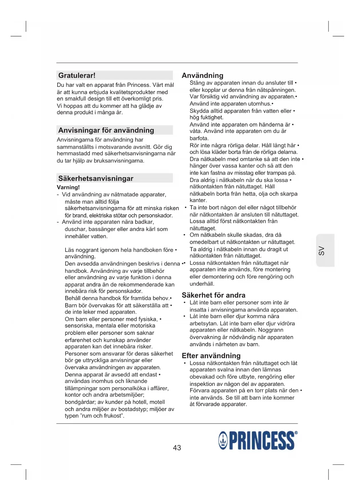 Hitta enhetens manual gratis 321201 PRINCESS i PDF-format.