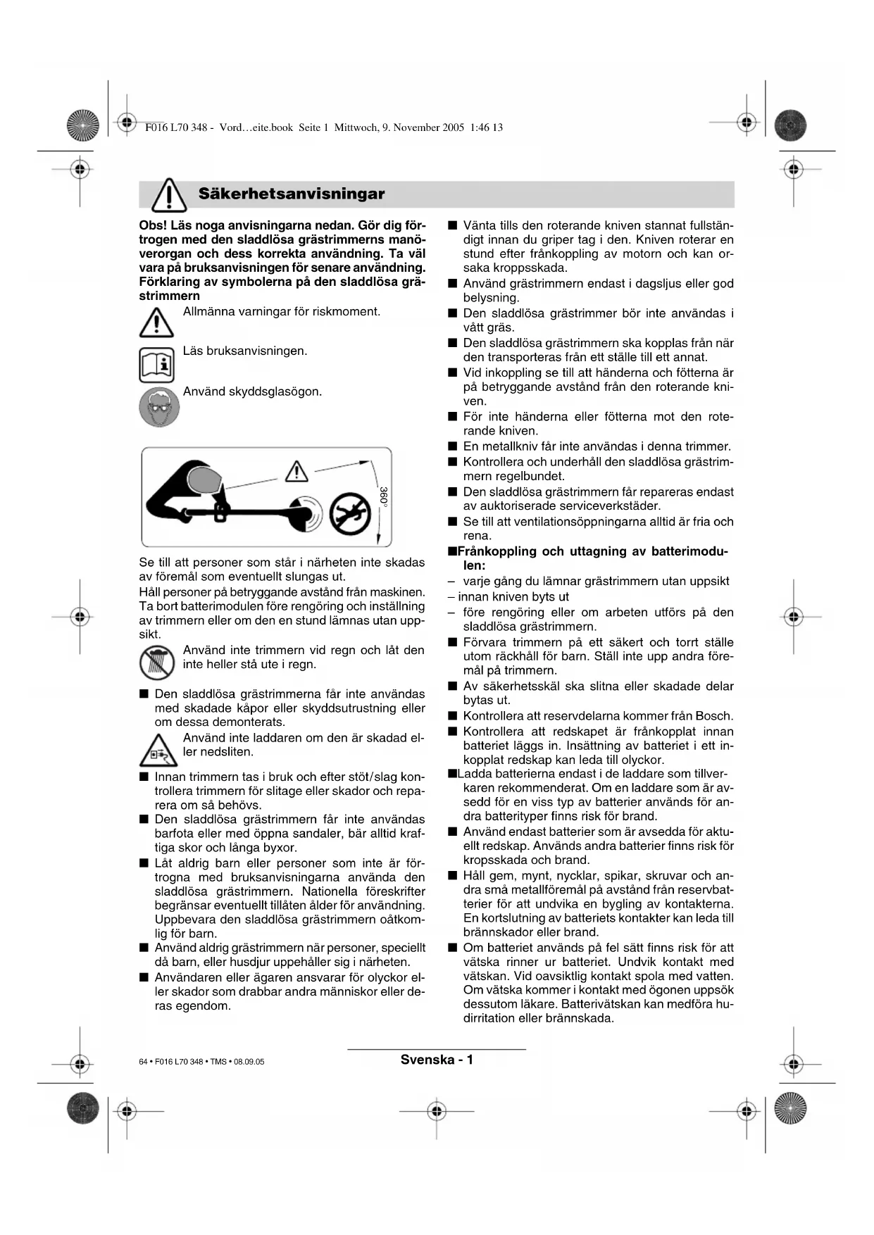 F016 L70 348 - Vord…eite.book Seite 1 Mittwoch, 9. November 2005 1:46 13 64 • F016 L70 348 • TMS • 08.09.05Svenska - 2