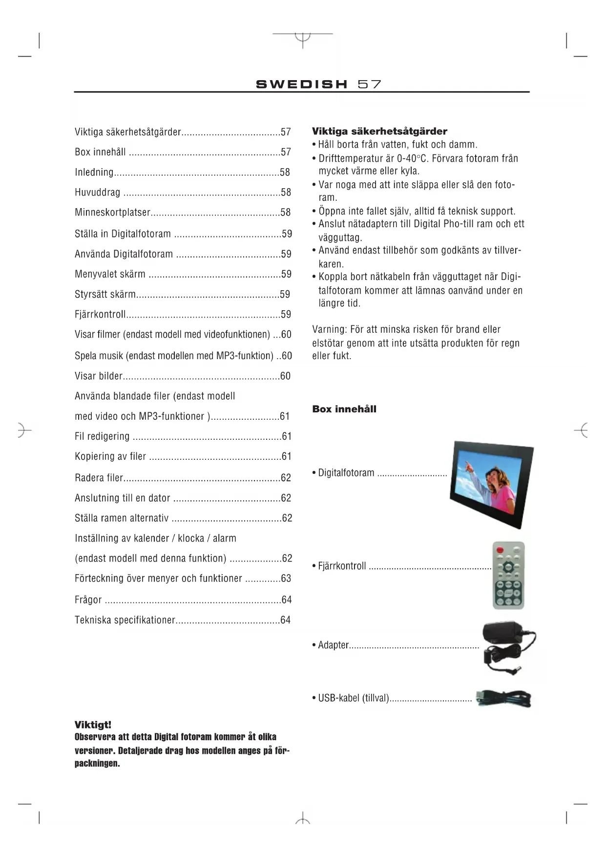 Viktiga säkerhetsåtgärder57