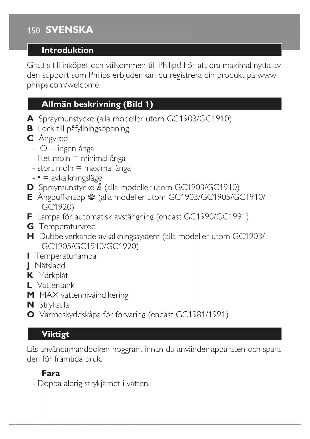 EasySpeed GC1905 - Strykjärn PHILIPS - Gratis bruksanvisning och manual