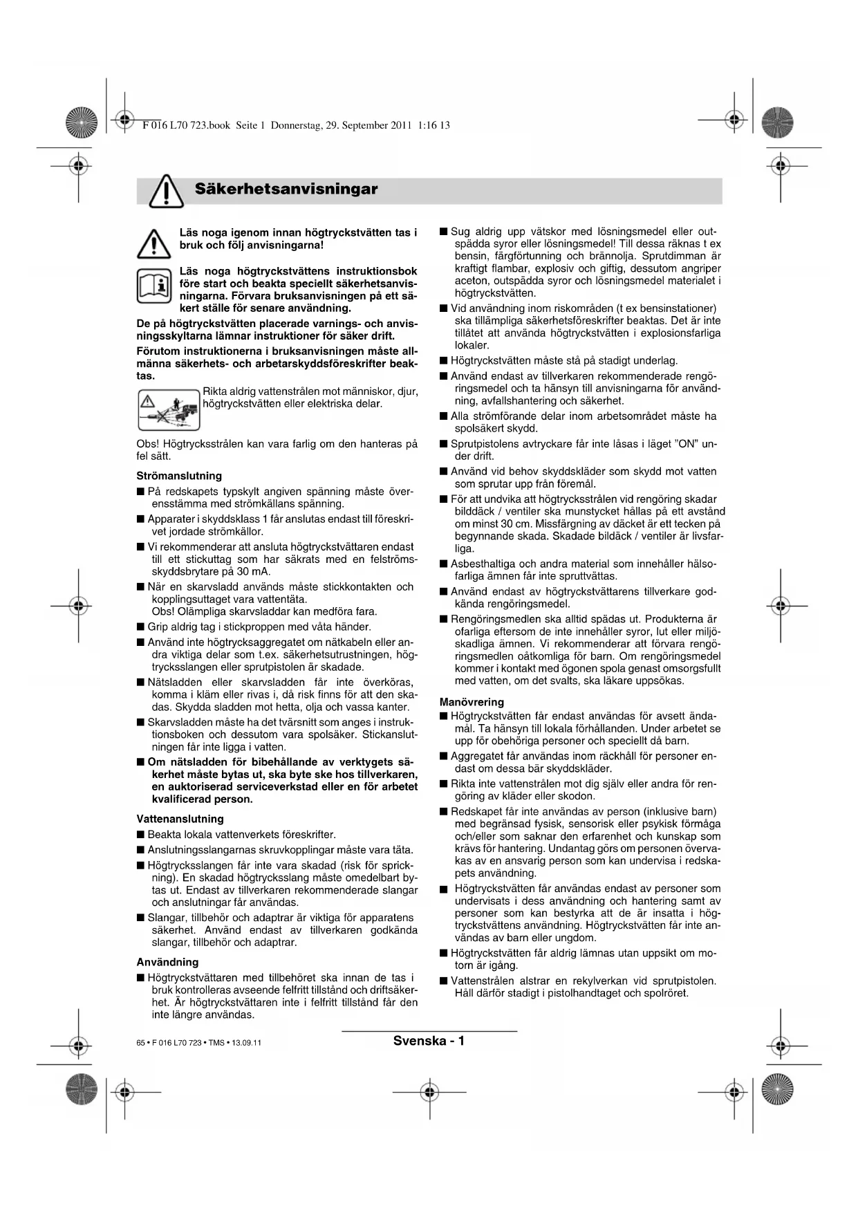 F 016 L70 723.book Seite 7 Donnerstag, 29. September 2011 1:16 13 64 • F 016 L70 723 • TMS • 13.09.11Svenska - 1