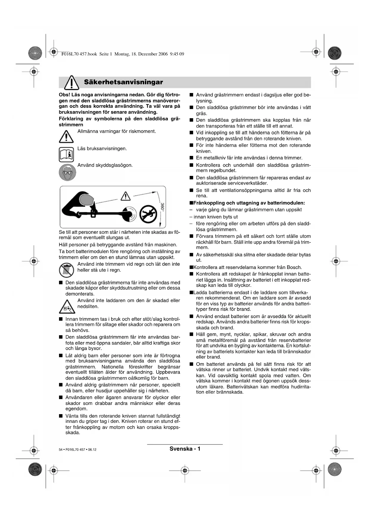 Säkerhetsanvisningar 360° F016L70 457.book Seite 1 Montag, 18. Dezember 2006 9:45 09