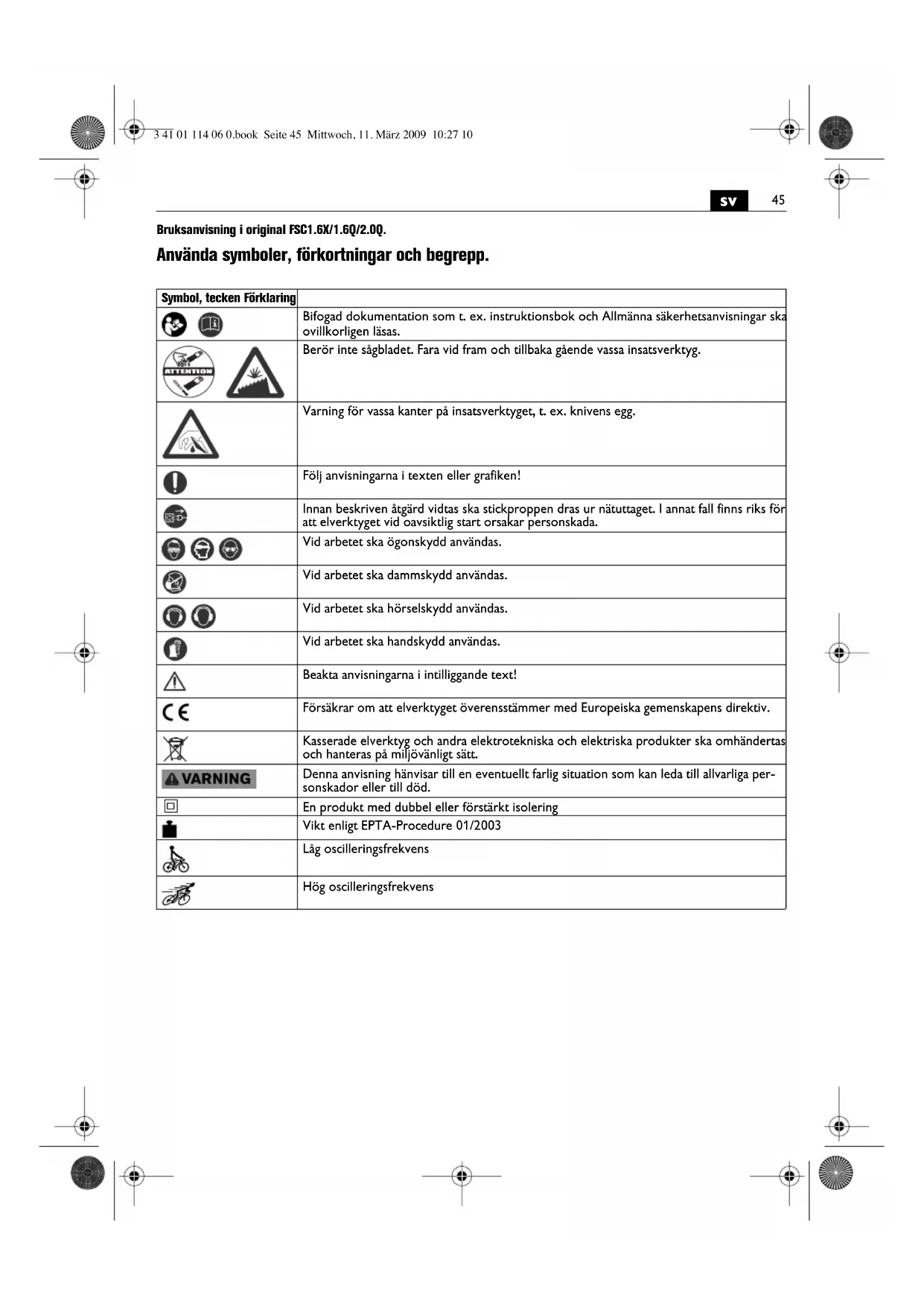 Använd inte detta elverktyg innan du noggrant LAST och fullständigt forstattenna instruktionsbok samt bifogade "Allmäna sakerhetsanvisningar"